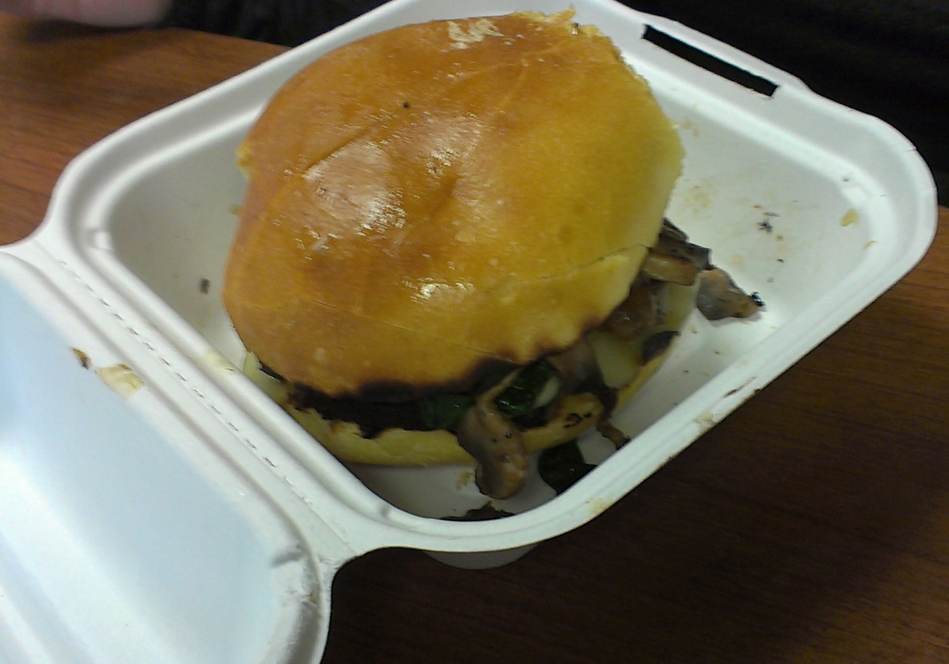 My coworkers tried some of the other burgers available, and all reported nothing but good things. The JME burger ($7.95) with bacon, bleu cheese spread, baby arugula, and roasted tomato jam was described as well, bacon-y and bleu cheesy. The Shroom burger ($8.95) with Swiss cheese, sauteed mushrooms, baby spinach, caramelized onions, porcini powder, and black garlic aioli also garnered a good review, though you’ll need a pretty discerning palate to taste the porcini powder amid all that.