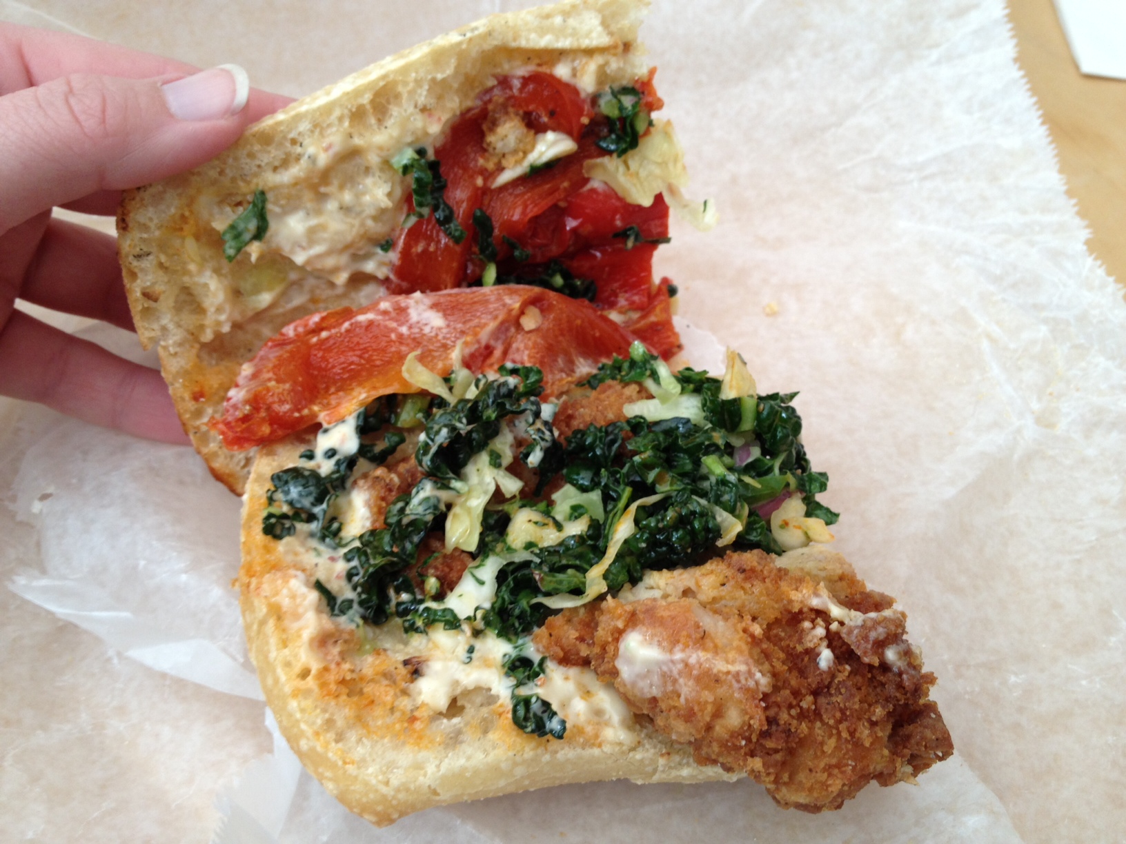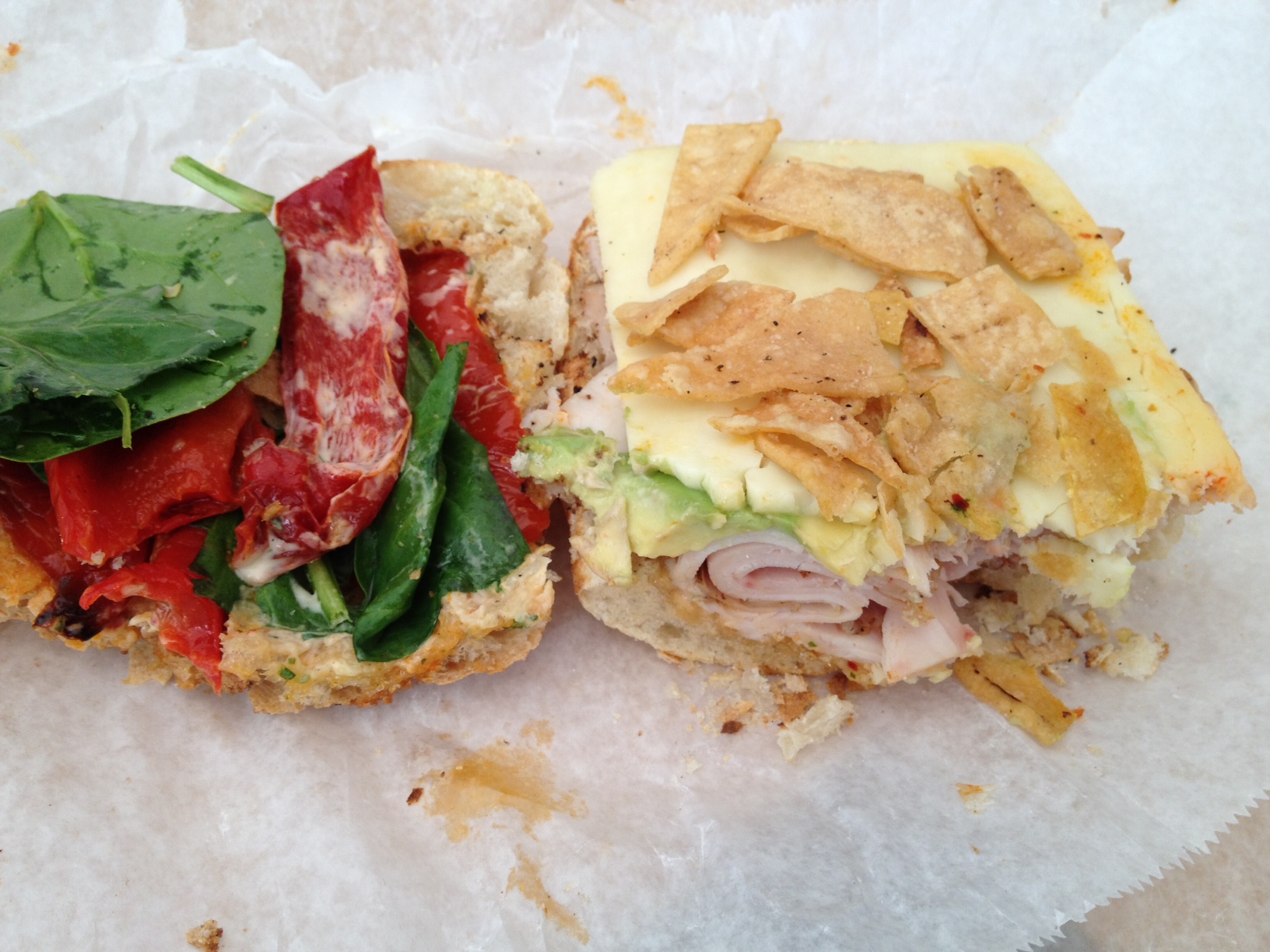 As someone who crumbles tortilla chips on her salad for crunch, I was a fan of the chips in the sandwich. How can you argue with something that is salty and crispy? For me, one of the standout items on the turkey sandwich was the roasted Aleppo peppers, because they were just a little bit spicy, like a better version of regular roasted peppers. Immediately, I started to think how good they would be with eggs. Yum… Do I get a cut when Spreads starts serving breakfast sandwiches with roasted Aleppo peppers?