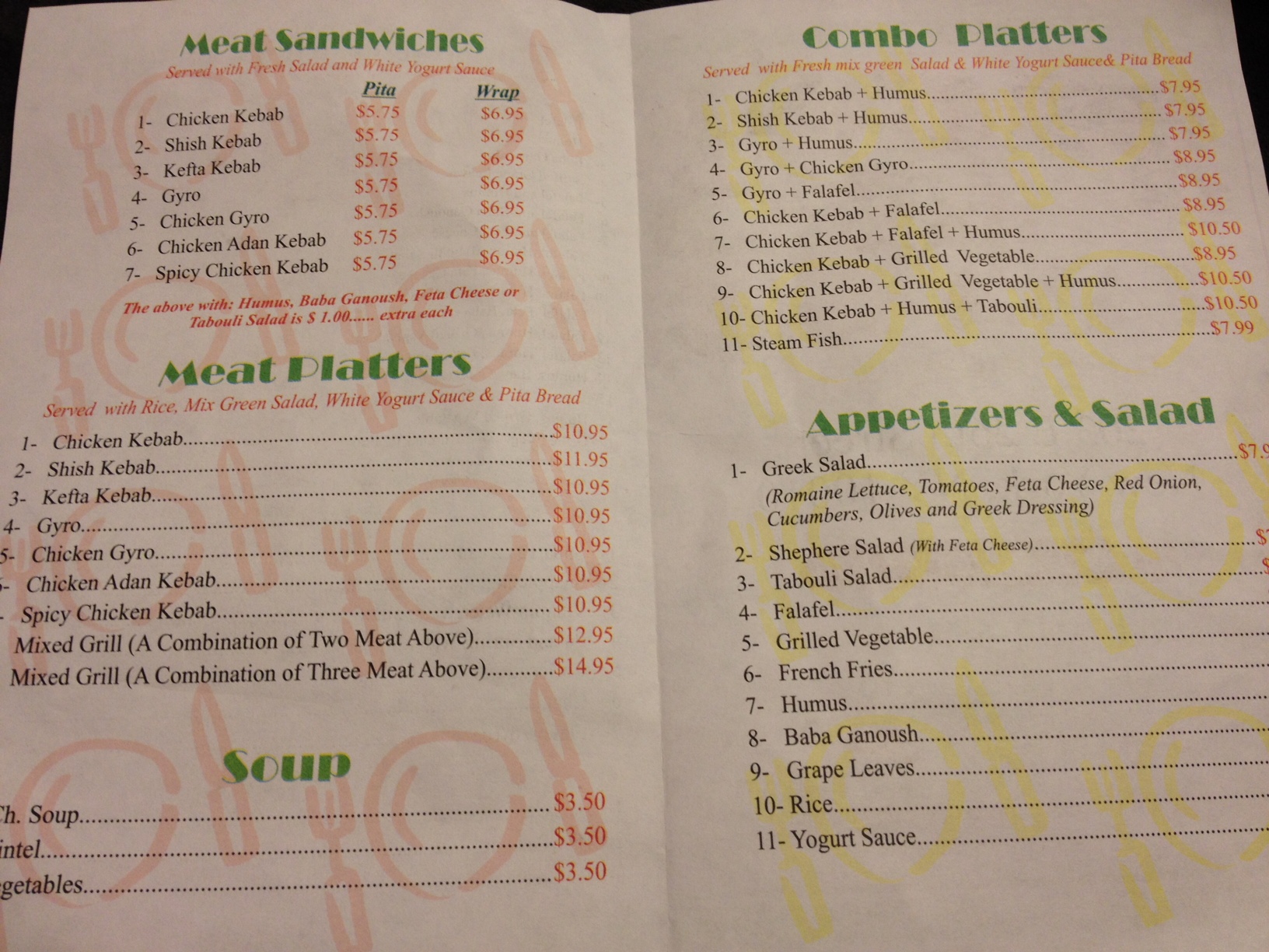 My phone died as I was trying to take a photo of the location, but I did manage to take home this menu. I can tell you the prices are very reasonable, with a $4.99 daily specials.
