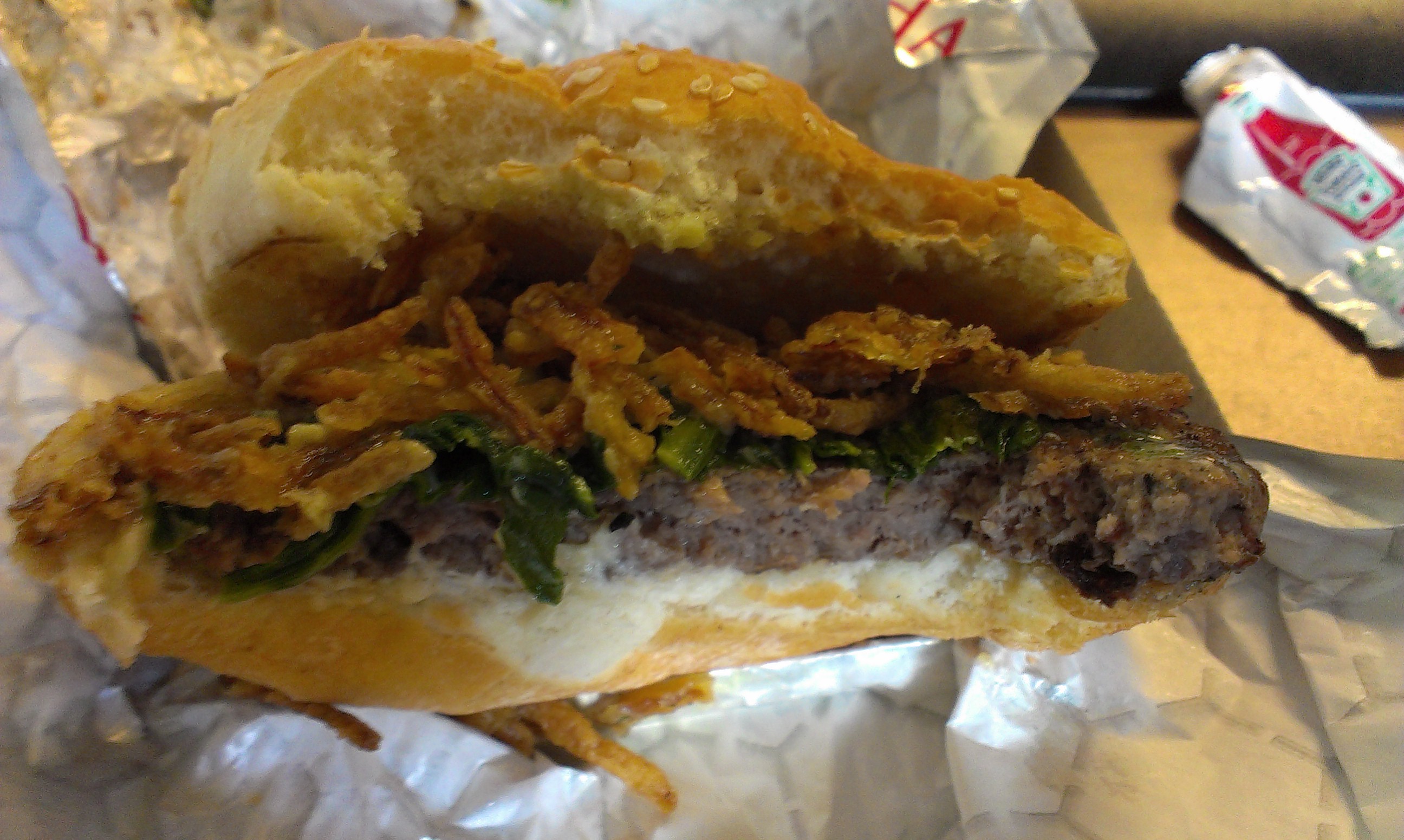 First, the menu has expanded considerably. In addition to the regular burger, Black Shack Burger, and Western Burger that Zach reviewed, they now have a Steakhouse Burger, plus a Sloppy Joe and chicken sandwiches, as well as salads, grilled tofu and fresh mozzarella sandwiches. The bad news is that prices have gone up considerably. The burger that cost Zach $4.50 in 2009 now costs $6.25, for example.