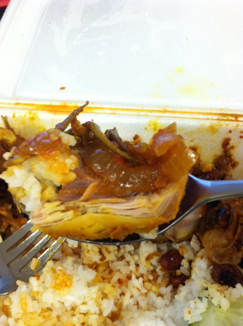I wasn’t as big of a fan of the Sambal Sotong (spicy squid). The squid was a little chewy to me, and tasted too similar to the anchovy paste except with the added chewy squid, so if I were to order this again, I’d probably stick with just the chicken. I think the squid just doesn’t transport that well, either. The other thing to be noted here is that though my food was packed with all sorts of flavors, it wasn’t piping hot temperature-wise and I could’ve probably nuked the whole thing in the microwave a little bit before I ate it, but I was just too excited to dig in. Ray did tell me that he keeps the lunches with him at his office, and that they are brought in in the morning from his Aunt’s kitchen in Flushing, so, my suggestion to other Midtown Lunchers would be to either get the food as early as you can, or take it out of the Styrofoam tray and microwave it before feasting.