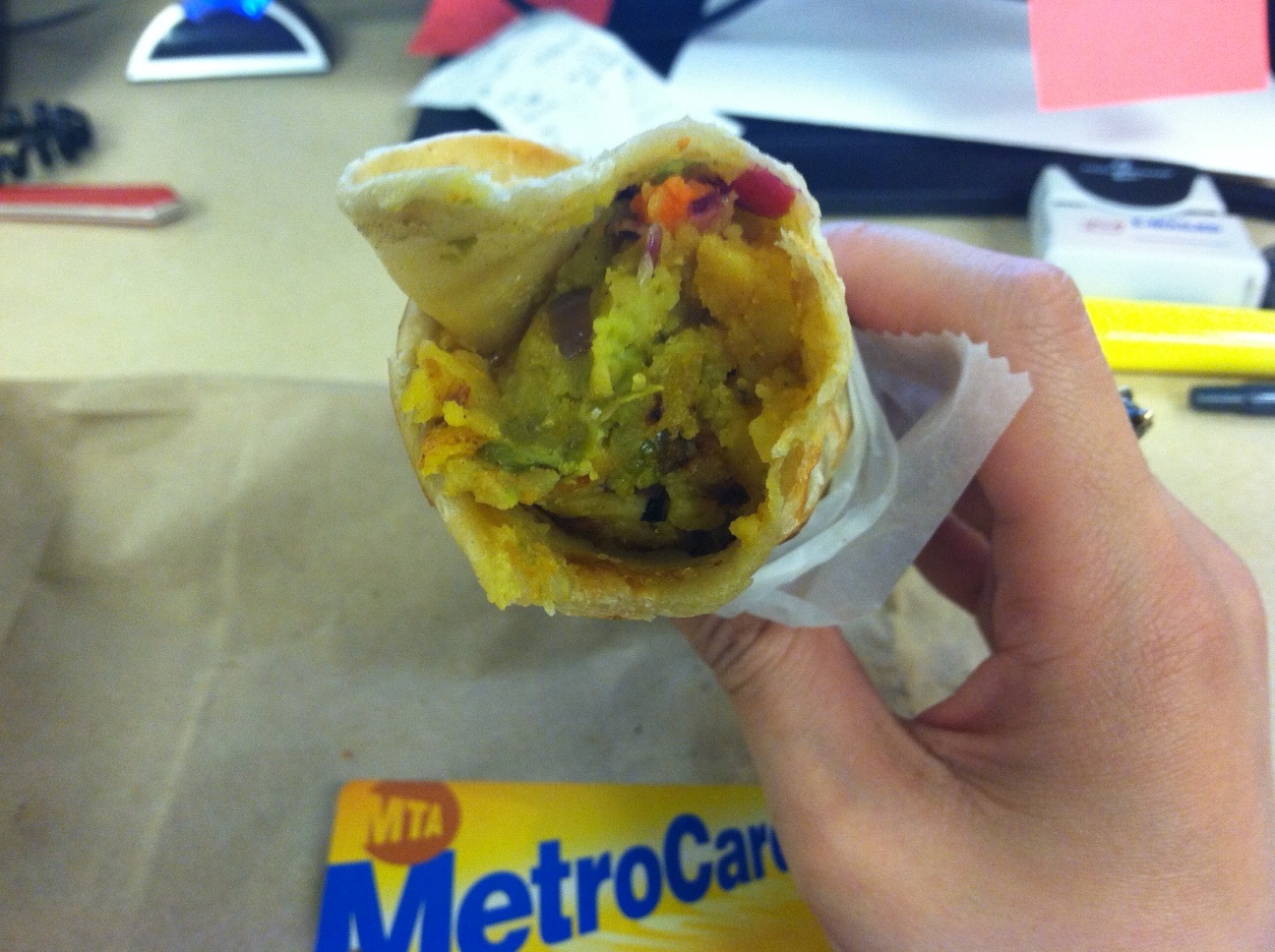 Though I was initially intrigued by their Goat Kacchi Biryani, it was Wednesday and the goat only makes its appearance on Tuesdays and Fridays, plus I wasn’t that hungry to begin with, so I ordered the Aloo Masala Kati Roll. For $4.50, this was a nice mini burrito of a snack. The potatoes were well seasoned and mashed nicely together with peas, red onion, carrot, and wrapped very tightly in a greasy, albeit tasty, piece of parantha (Indian flatbread). It wasn’t particularly spicy compared to other Aloo Masala Kati Rolls that I’ve had, but I still thought it was pretty good.