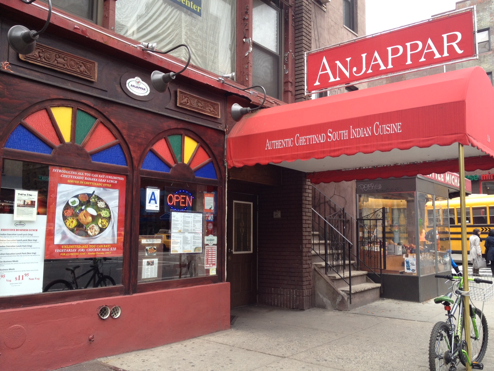When Anjappar opened in Feb 2012, they only offered lunch combos above $10. As an international chain with 30+ branches in India, United Arab Emirates and New Jersey, among others, they might have thought their name would be sufficient to draw in customers. I am pretty sure they underestimated the price sensitivity in Curry Hill with so many great lunch options under $10. Anjappar is sometimes listed as Anjappar Chettinad, because it was founded in Chennai and serves typical Chettinad cuisine.