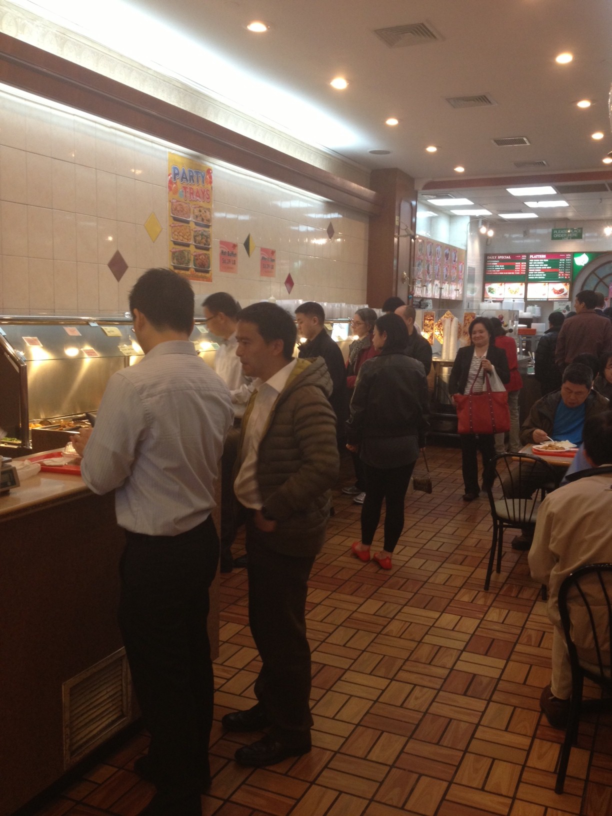 The place has plenty of seating, but also draws a pretty big lunch crowd, so you may still end up at a table with a stranger or two. As Zach pointed out in 2008, if you’re looking to take advantage of the discounted price, it’s best to show up right at 2:15pm before everything is gone. Get there any later and you risk the whole buffet looking like this…