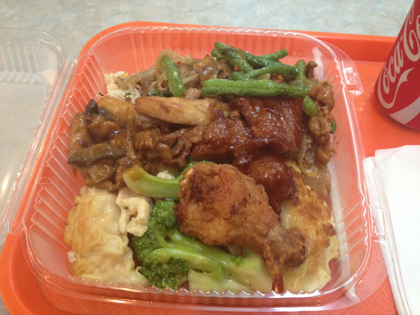 No doubt about it, this food is greasy. Some parts tasted overly salty, some things may have been a bit bland, but for the smorgasbord of options I’m getting on one plate, I’m not complaining. The dumplings seemed particularly tasty to me – there were a variety of types (including leeks and pork, chicken and shrimp, shumai, and more) and each was loaded with savory meat. The menu gets changed up a bit each day, so not everything will be available every visit.