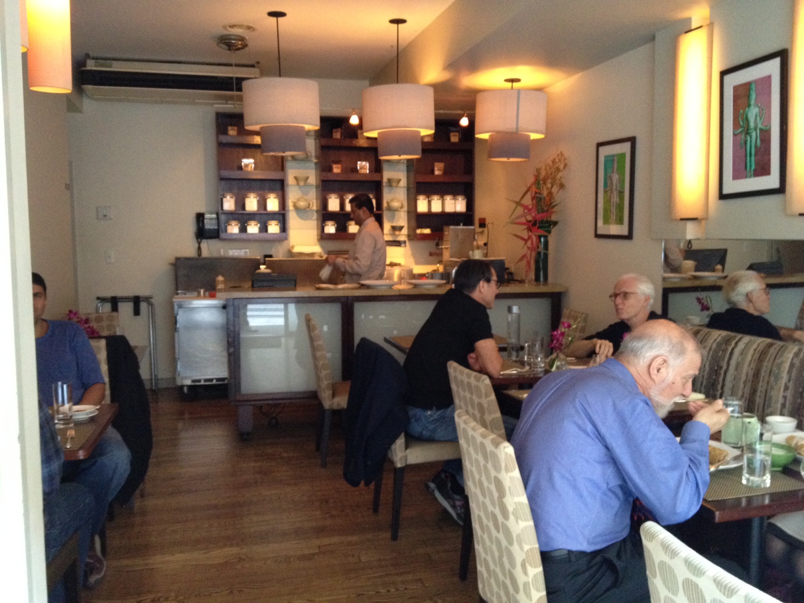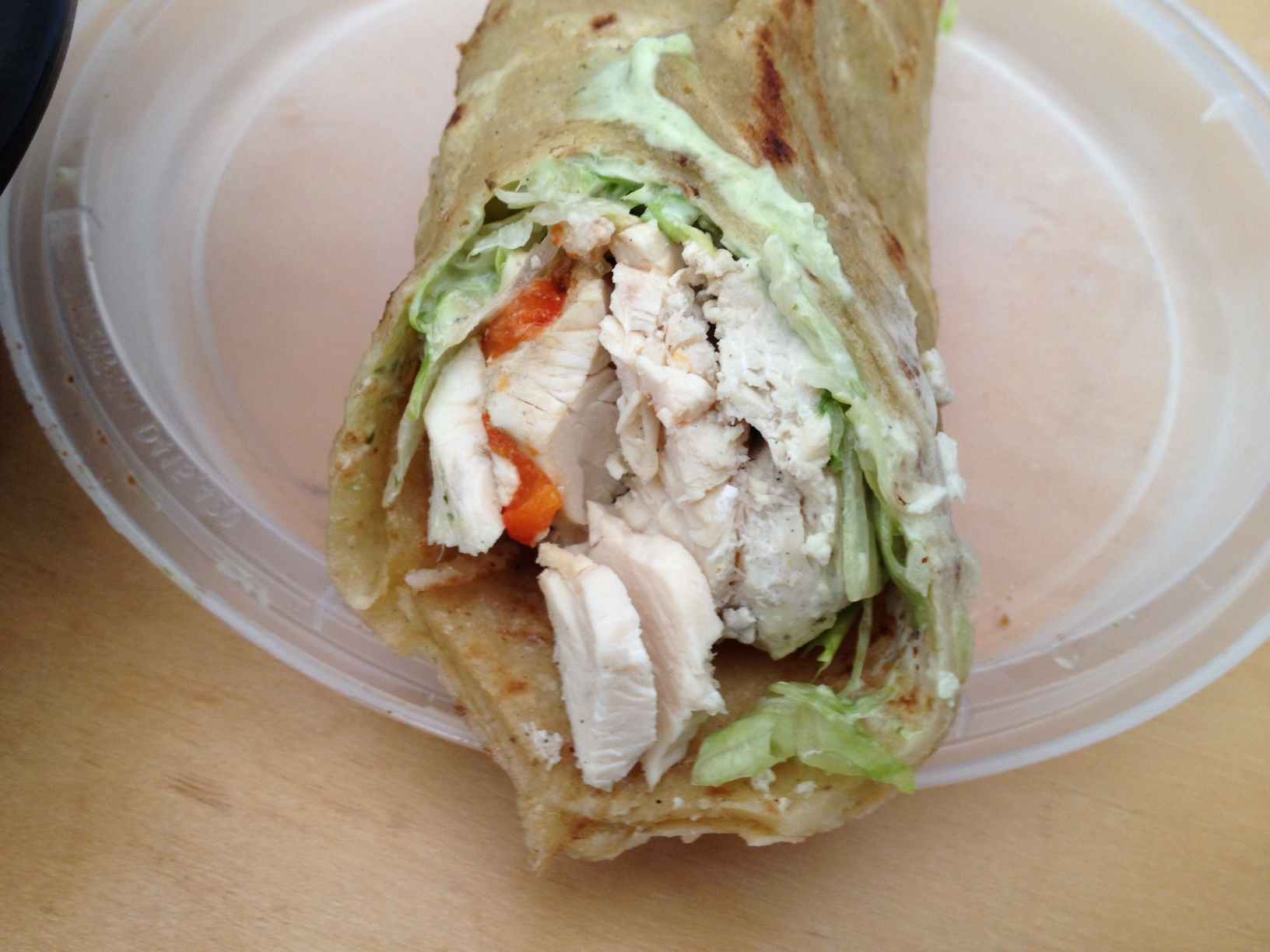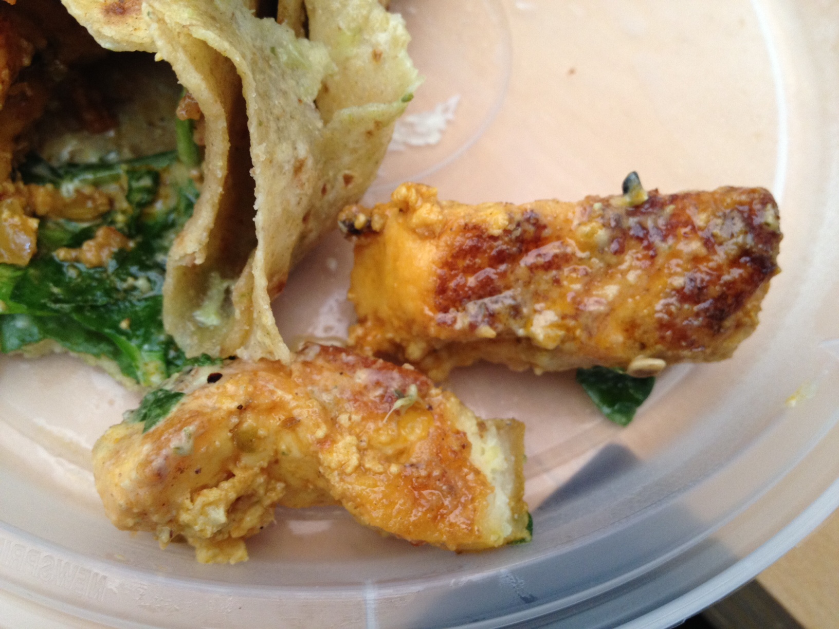 I also ordered the saag paneer sandwich ($9.50). The paneer was out of this world. Okay, okay, I love paneer, but still. I was shocked and disappointed that the saag in the wrap was not shredded and cooked like a saag paneer curry, but it was spinach leaves laid out in the bread item. I appreciate that this prevents a mess. And really, it tasted very good anyway, because of the paneer. (A quick word about the sandwich wrapping: I can’t say for sure, but I am thinking it is correct to identify it as a roti, but I could be wrong, and I am sure the readers will let me know if I am wrong.)