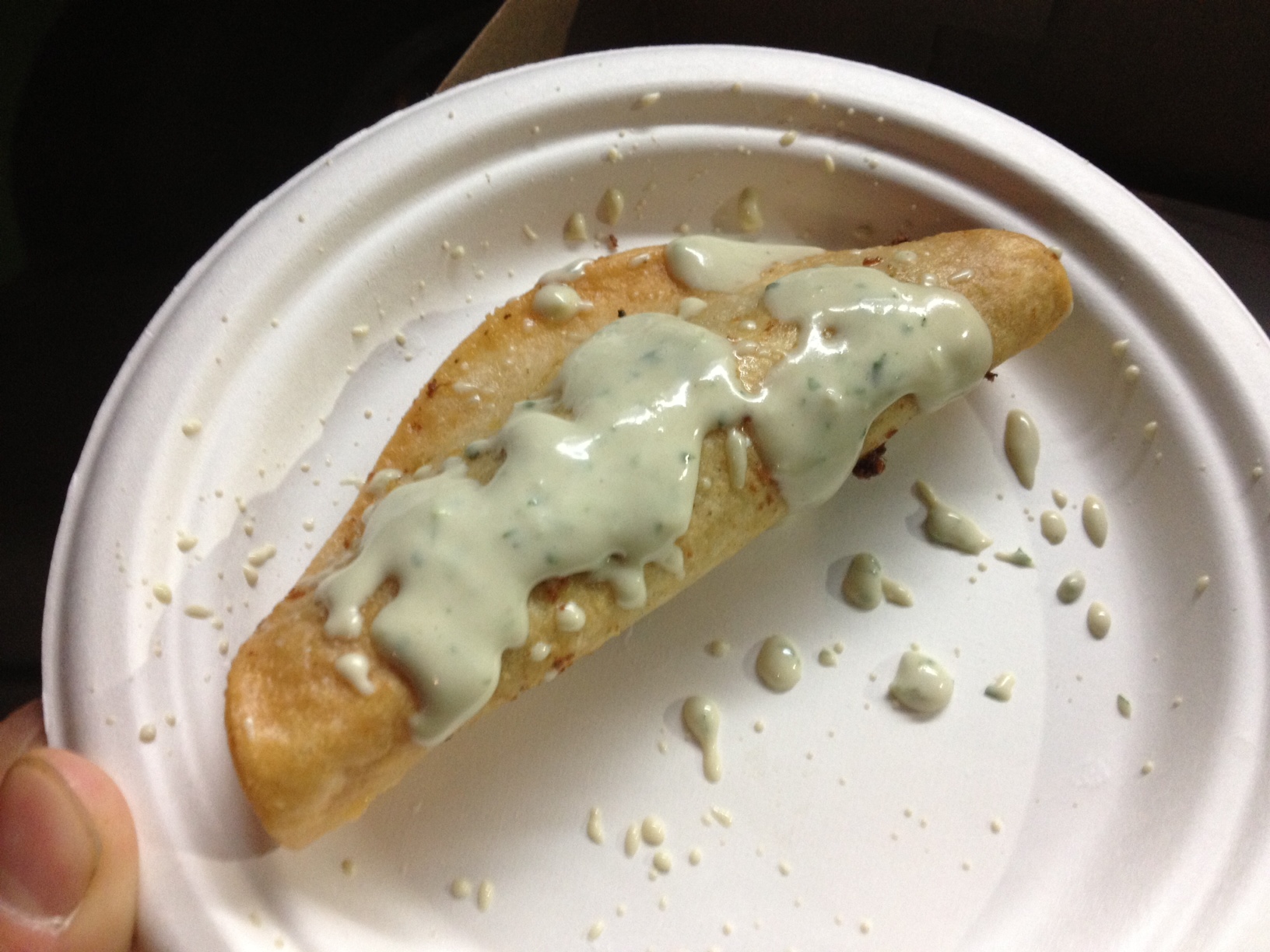 Despite the lines, I also got to try Souvlaki GR’s always spot-on chicken souvlaki and greek fries, and a surprisingly crunchy falafel flauta from Mike n Willie’s.