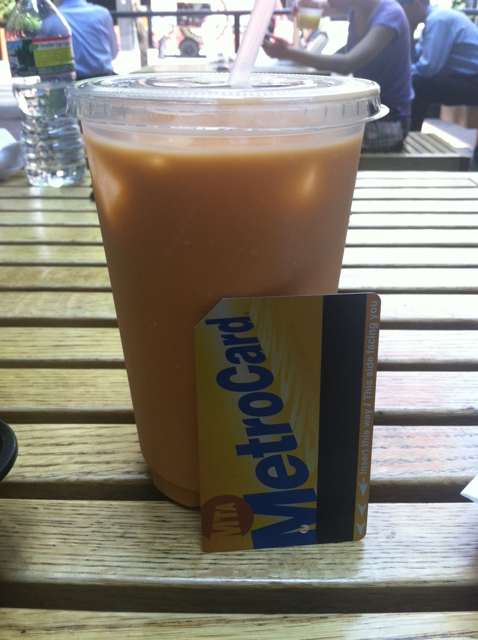 Thai Iced Tea ($3). So happy I could wash everything down on a hot day with a solid Thai Iced Tea. The bite of Pad Kee Mao was instantly tamed by this milky drink.