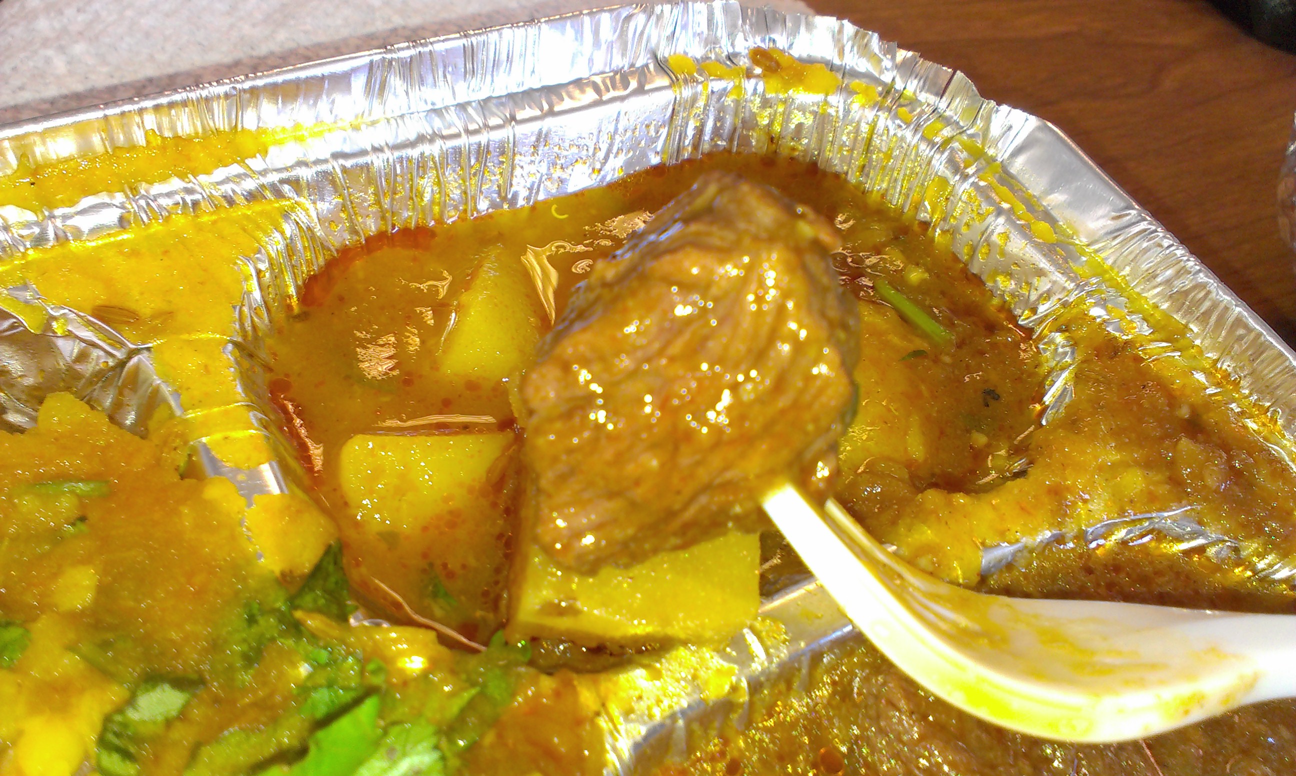 So there’s not enough lamb curry, but how did it taste. Happily, I can report that its pretty good stuff. the Indian flavors in both the potatoes and lamb curry were spot on, and the rice was well-seasoned too. Especially nice was the generous amount of fresh cilantro sprinkled on top of the rice, which added freshness to the dish.