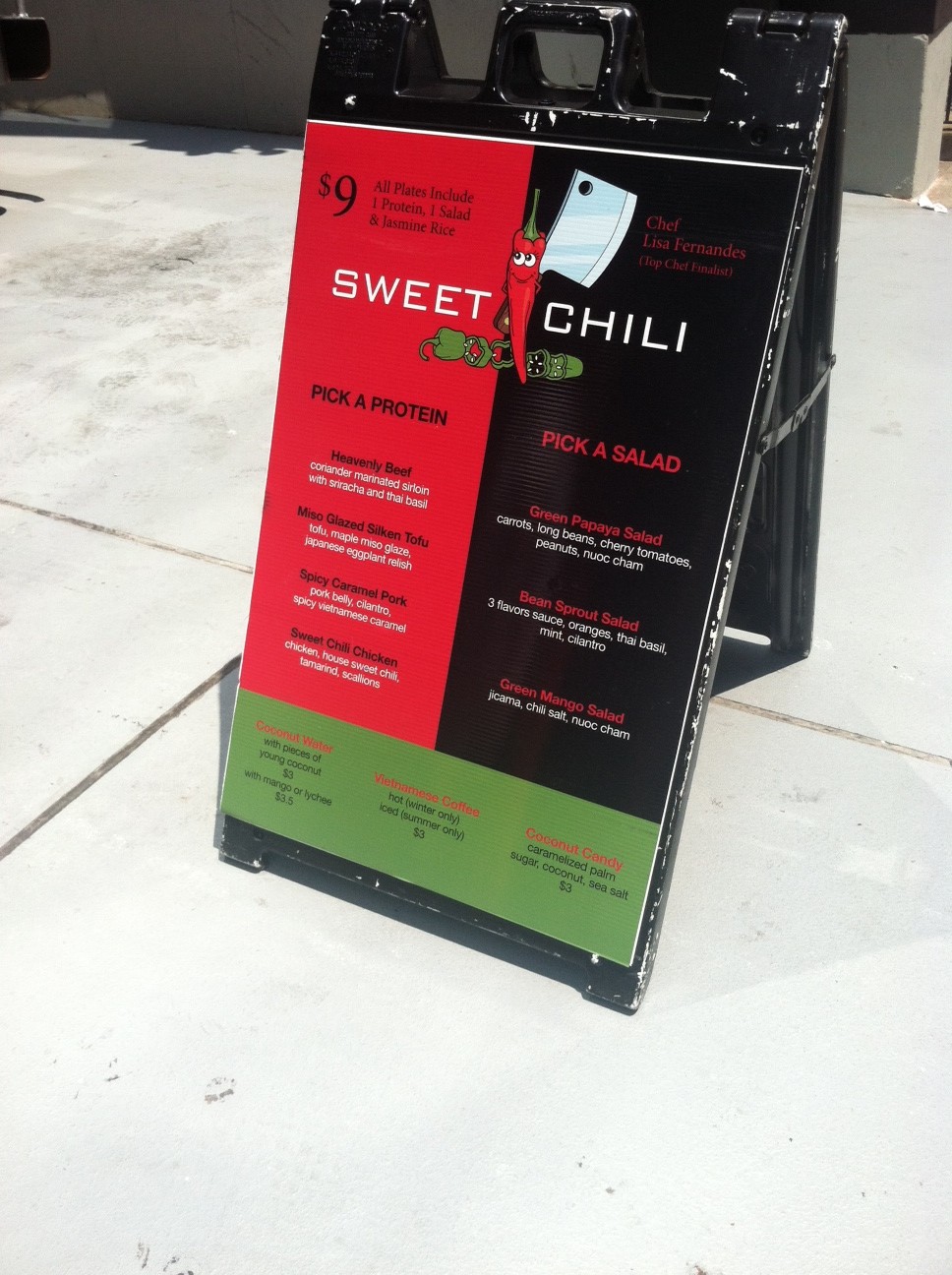 Though I did have some weariness towards Sweet Chili’s so-called Thaientamese food, or really, Asian-fusion food in general, I tried to cast them aside, knowing that Chef Lisa was runner-up in Season 4’s Top Chef Chicago, as well as the fact that she has over twenty years of culinary experience in high end restaurants such as Asia de Cuba, Rain Thai Restaurant, and Public. She’s a woman who loves to create new flavors, and seems to have the creds to back it up. At Sweet Chili, for $9, you get to choose between one of the four proteins, and one of three salads to go along with a side of jasmine rice.