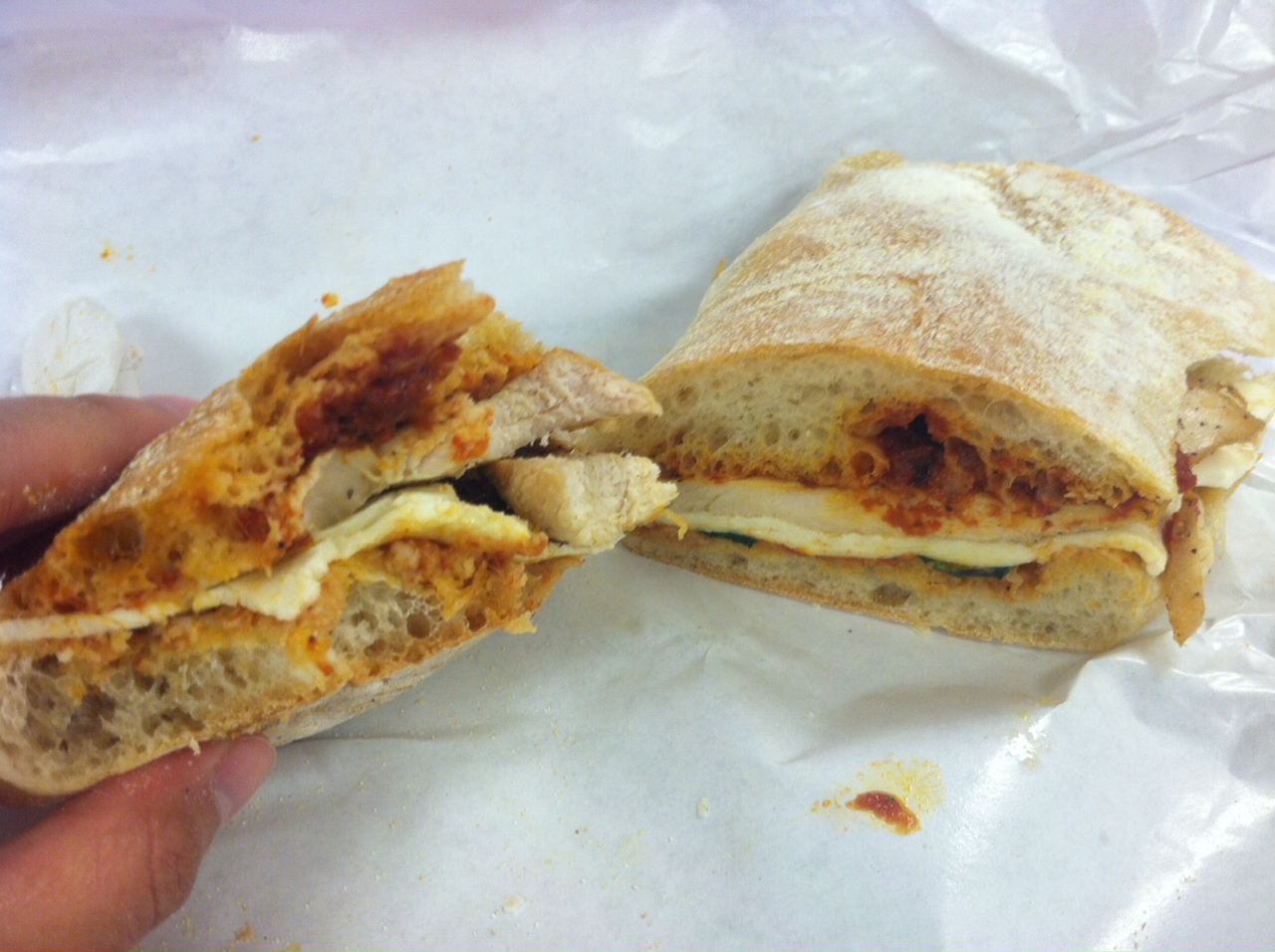When I finally was ready to delve into my sandwich back at the office, I realized I was given a whole Big Pauly instead of a half (woo!), but the chicken was grilled and not breaded, which made for really dry chicken. There also wasn’t nearly enough marinara sauce for this parm, so between the dry chicken and the lack of marinara, the sandwich was just ultimately too dry, and not packed enough with flavor compared to the cold cut sandwiches.