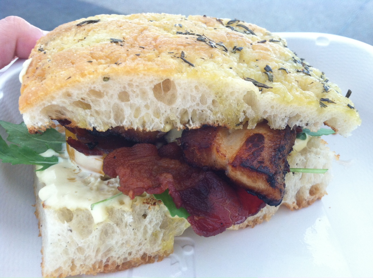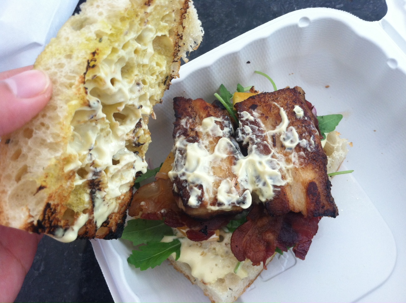 On my third trip, I went for the Mediterranean BLT, which is clearly, hands down the thing you need to get at Amali Street Food. This sandwich rocked. Braised pork belly ON TOP of bacon. Oh my…