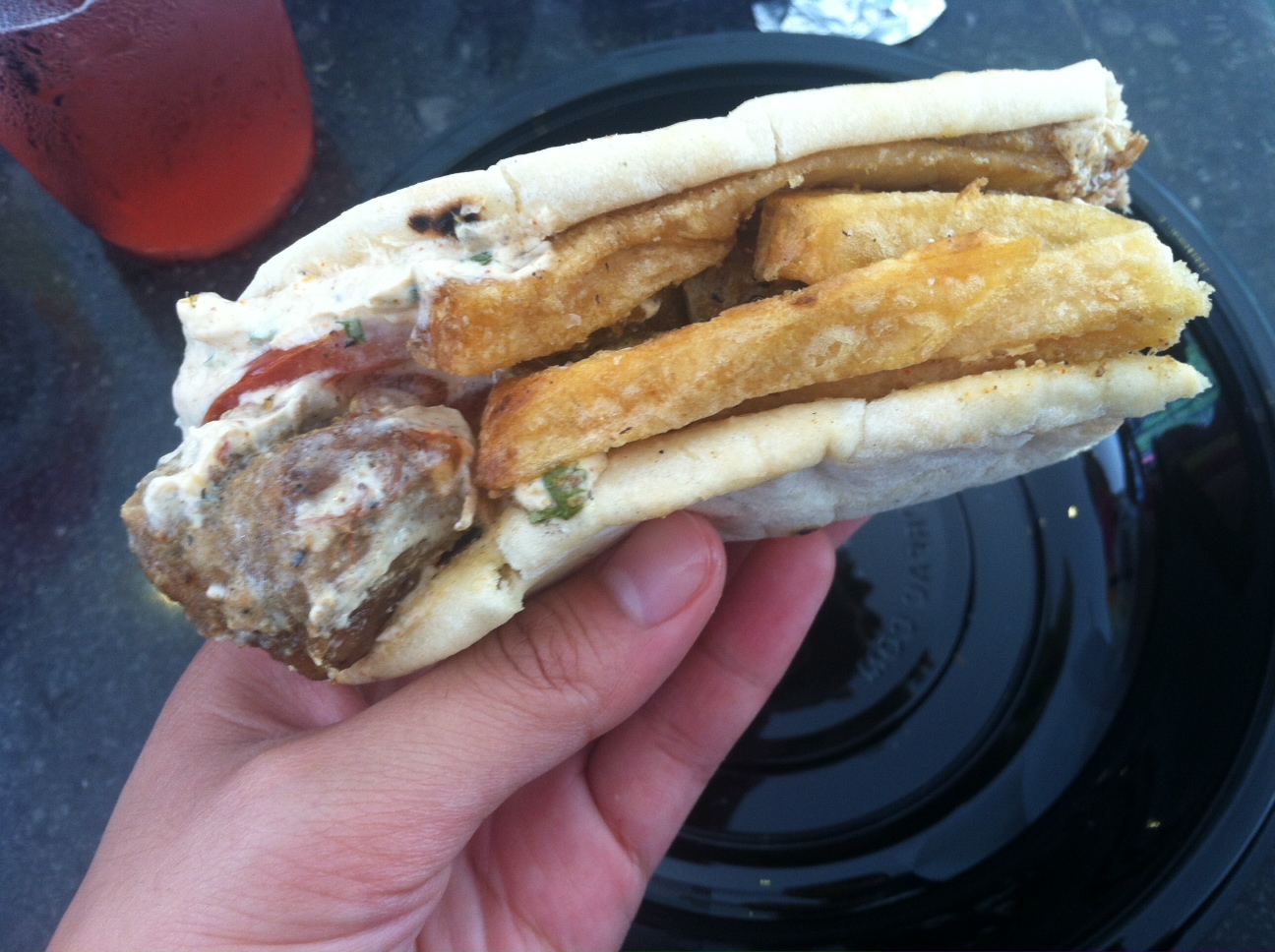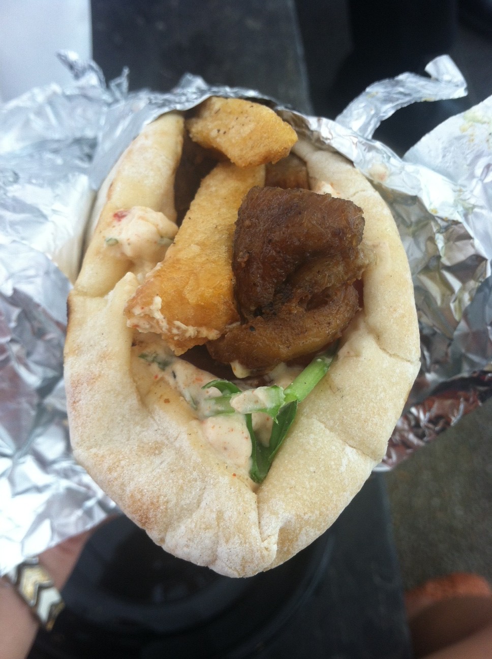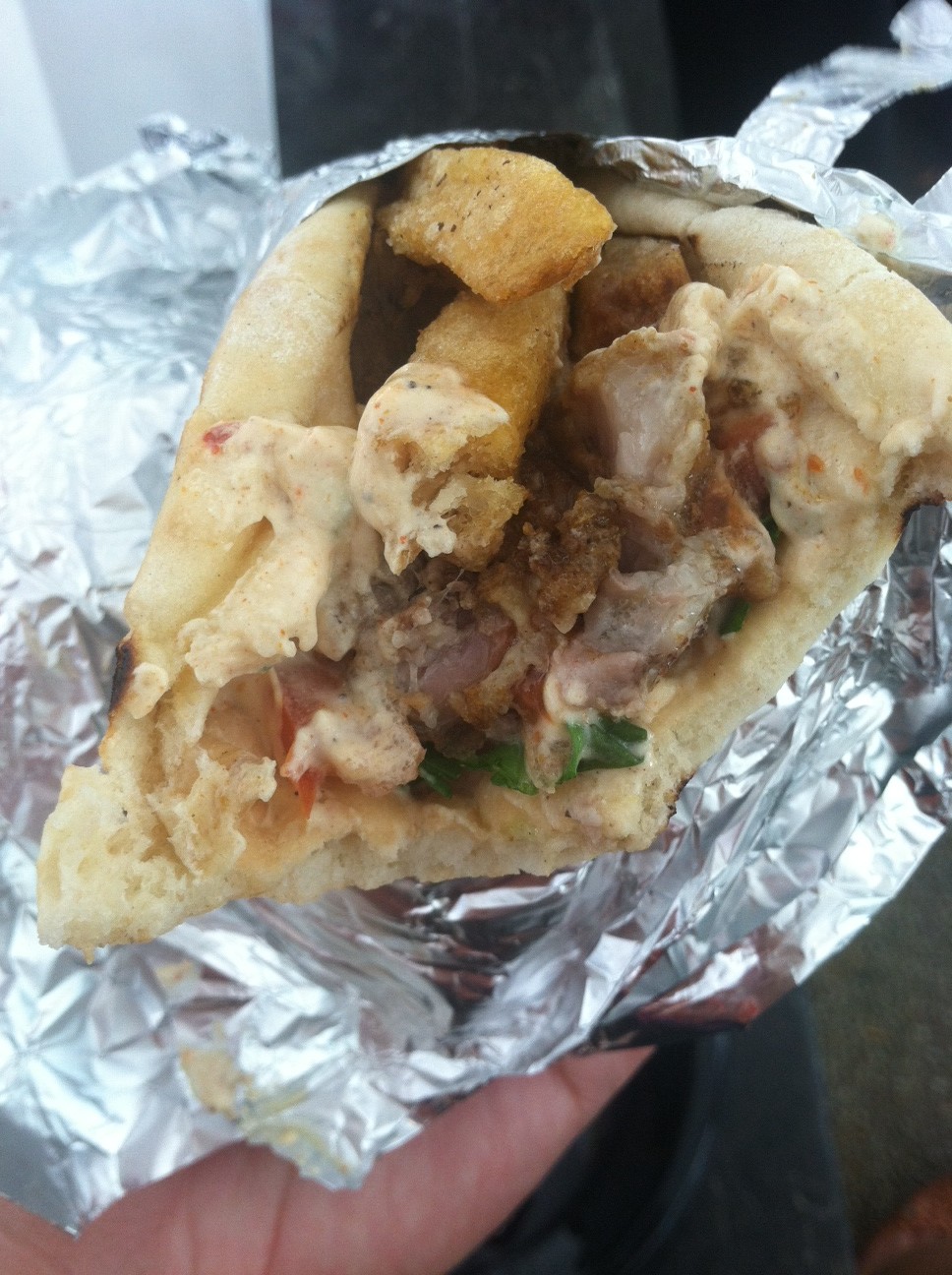 And yes, that’s right, there are fries in there! Not on the side, but INSIDE the gyro. The fries give the whole thing a nice crisp. Come to think of it, having fries in the gyro reminded me a little bit of having a California Burrito from San Diego, and I was into it. The pita itself also held up really well after being toasted on the grill. But about that bread – I did go to Amali Street Food three times, and on my second trip, the bread delivery never made it, which left me trying to figure out what I’d do with myself up at 60th Street. I’d like to think that this has been worked out by now, but it does look like Amali Street Food has been running out by 1:30, so best to get there early for the goods.