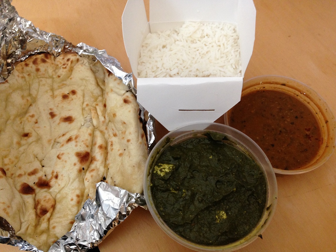 All of the lunch specials (minus the kababs) come with dal, rice and bread, which can be so filling. In fact, my take-out bag had three plates and three silverware packets, even though I only ordered two lunch meals. So clearly there is someone out there who regularly orders two meals for three people.