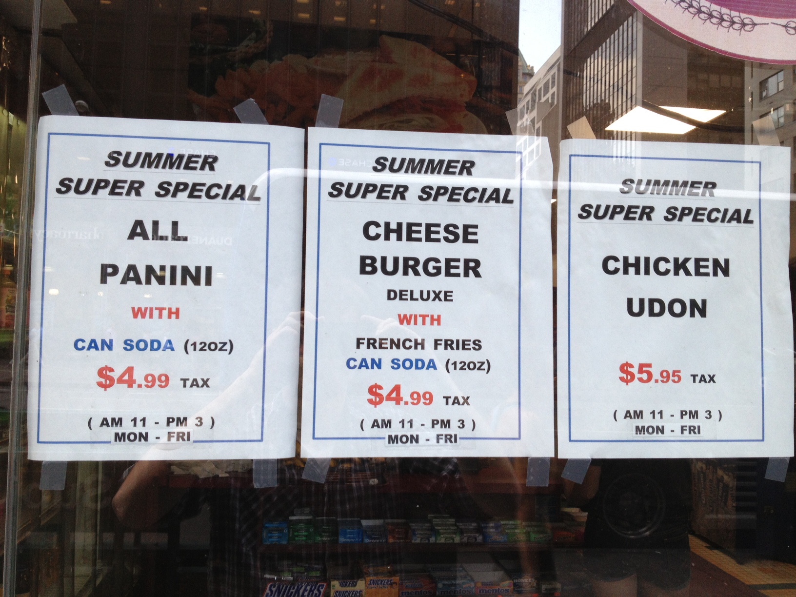 Holy moley! Just five bucks for a burger, fries, AND a can of soda? If there was ever a time and place to try a generic deli burger, well, this was it. Once inside, I saw that they have a whole bunch of summer specials, daily sandwich specials, a relatively cheap by-the-pound buffet, an udon and soba station, and plenty of other options that seem appealing at a glance. Overall, I’d say that Manhattan Gourmet has more options and cheaper prices than your average midtown deli. How is the actual food, though?