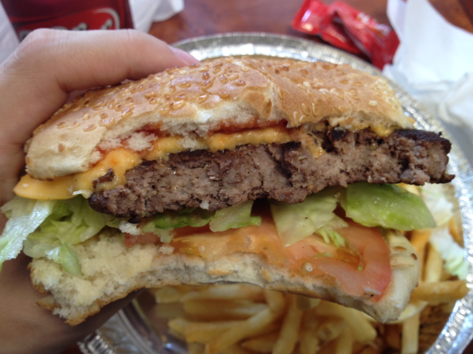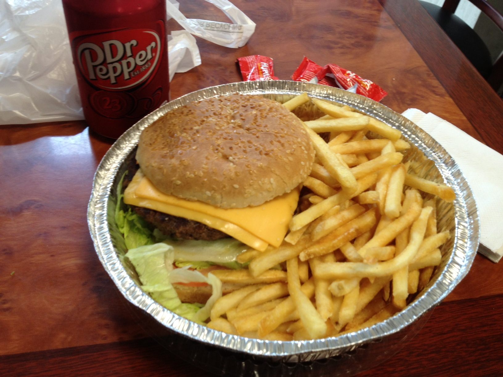 As you may have predicted, the burger kind of sucked. Given the extremely low price, it was kind of silly to expect anything else, but I was being unfortunately optimistic at the time. The patty was mostly flavorless, possibly overcooked, and had a bit of a rubbery texture. The cheese was slapped on last minute and was not at all melted. The fries were shaped liked McDonald’s fries, but were super plain tasting. At least the Dr. Pepper was pretty good.