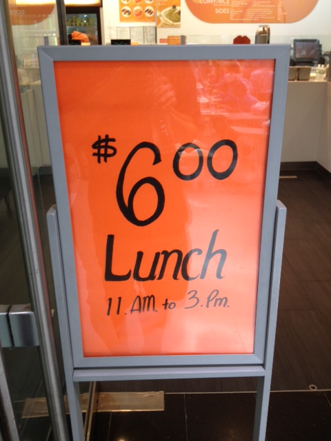 It’s been a few years since we last looked at Kushi-Q and its yakitori. Although its 3rd Ave. location shut down in 2010, the Citigroup Center food court location (at 53rd and Lex) is still going strong. One of Zach’s biggest complaints about the place in 2010 was that it was kind of pricy for the amount of food you actually got. Now, they’re trying to appeal more to low budget lunchers with a $6 special.