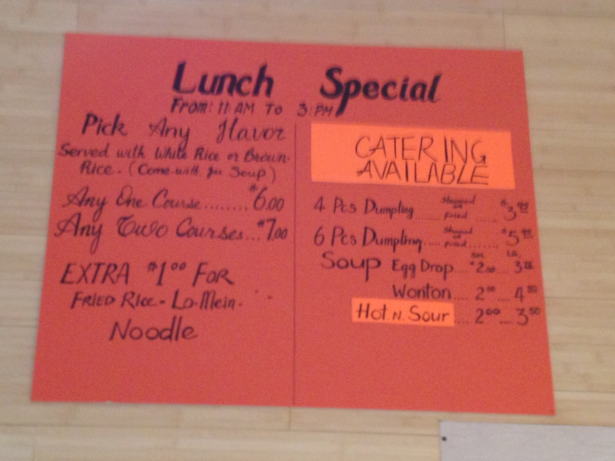 Interestingly, the lunch special does not at all apply towards their signature meat sticks, but only a newer selection of Chinese offerings. They have a steam table towards the side with white and fried rice, lo mein, fried dumplings, General Tso’s, chicken and broccoli, beef and broccoli, kung pao chicken, and maybe a couple other dishes.