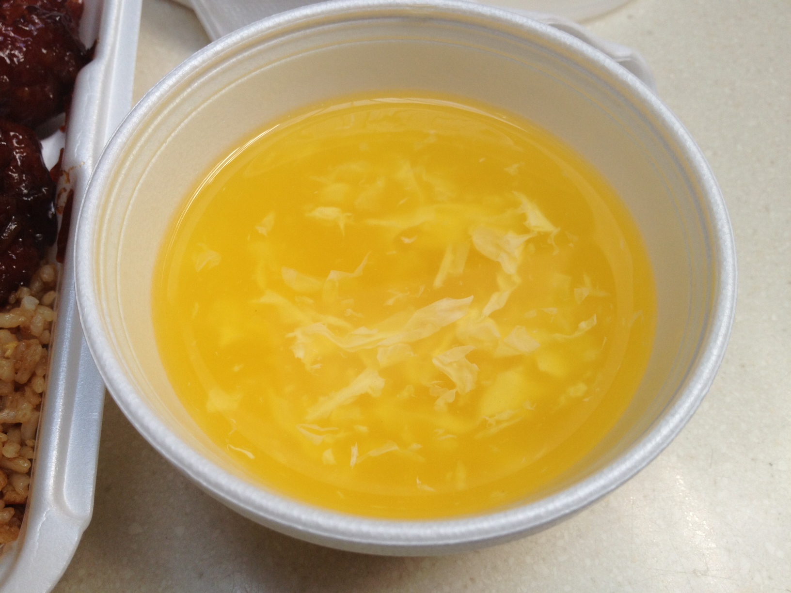 For the sake of this review, I splurged on fried rice (plus $1) and two entrees instead of one (plus another $1). I ended up with a plate of General Tso’s, chicken and broccoli, and fried rice, with an egg drop soup on the side, all for $8.70 after tax. Not as cheap as the big orange sign advertised, but I guess that’s my own fault…