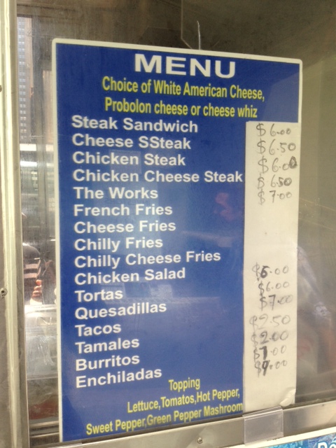 Sadly, the rebranding and the new menu must not have been pulling in business like the owners had hoped. Walking by the cart now, it looks as though they’ve switched back to their old name and have scrapped cheesesteaks from the menu entirely. This news is actually pretty upsetting to me because it just so happens that the cheesesteak I ordered last week was excellent.