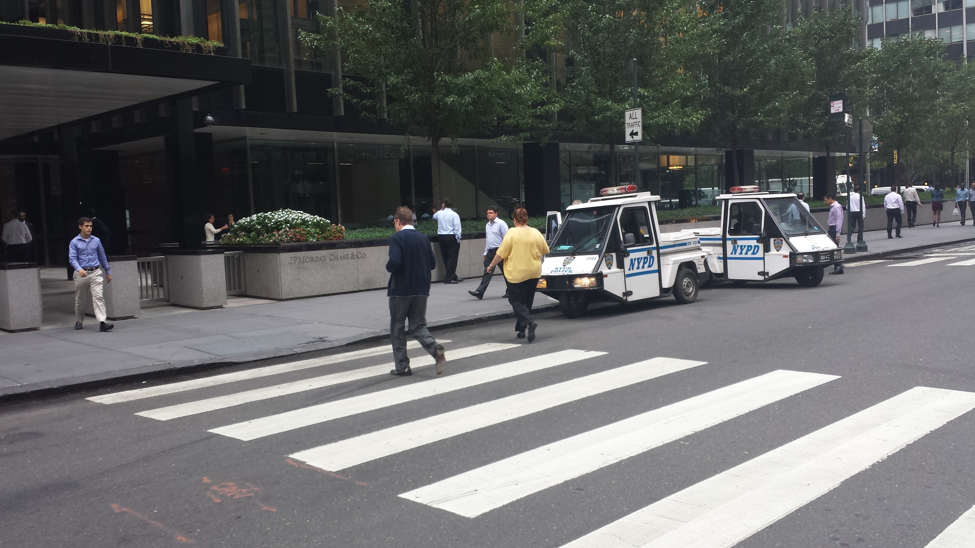 Today, the NYPD shut down the “outdoor urban food court” of food trucks located on 47th between Park & Madison. As Blondie had noted in the past, the street is regulated for 3-hour metered parking for commercial vehicles during the week, and food trucks congregated on the same block often lead to complaints and the Alpha Unit breaking up the party.