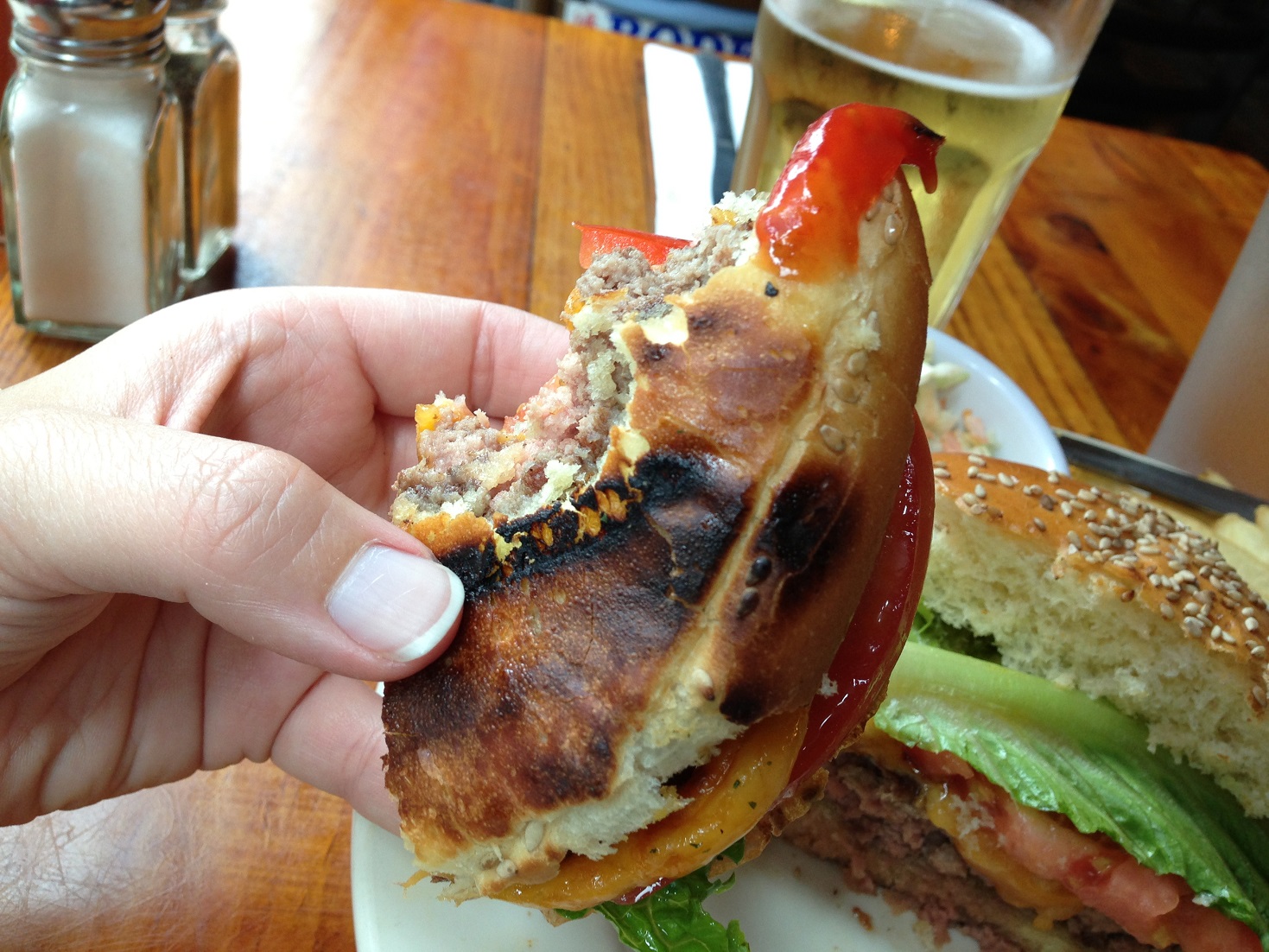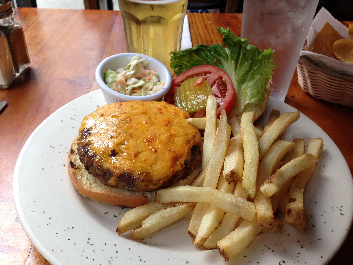 - Respectable burger and cold beer.