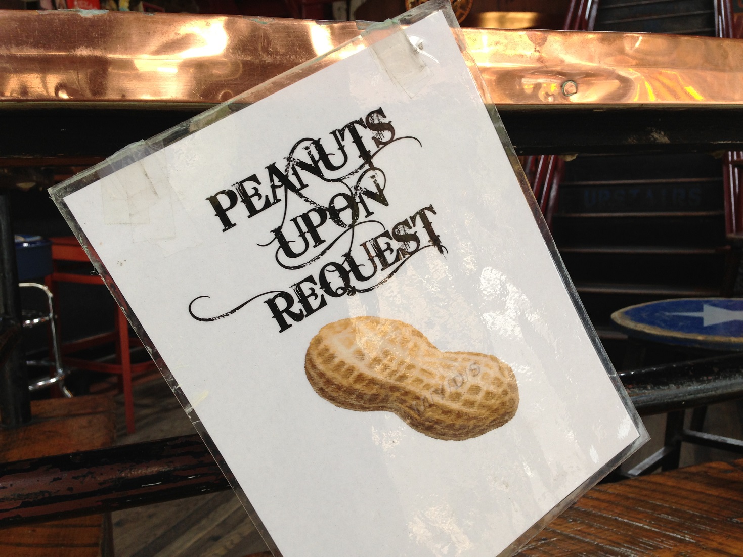 And the space is filled with old signs (or at least signs made to look old), and slogans like “make beans not war”. I mean, they are good for your heart so that must help peace. And free peanuts!