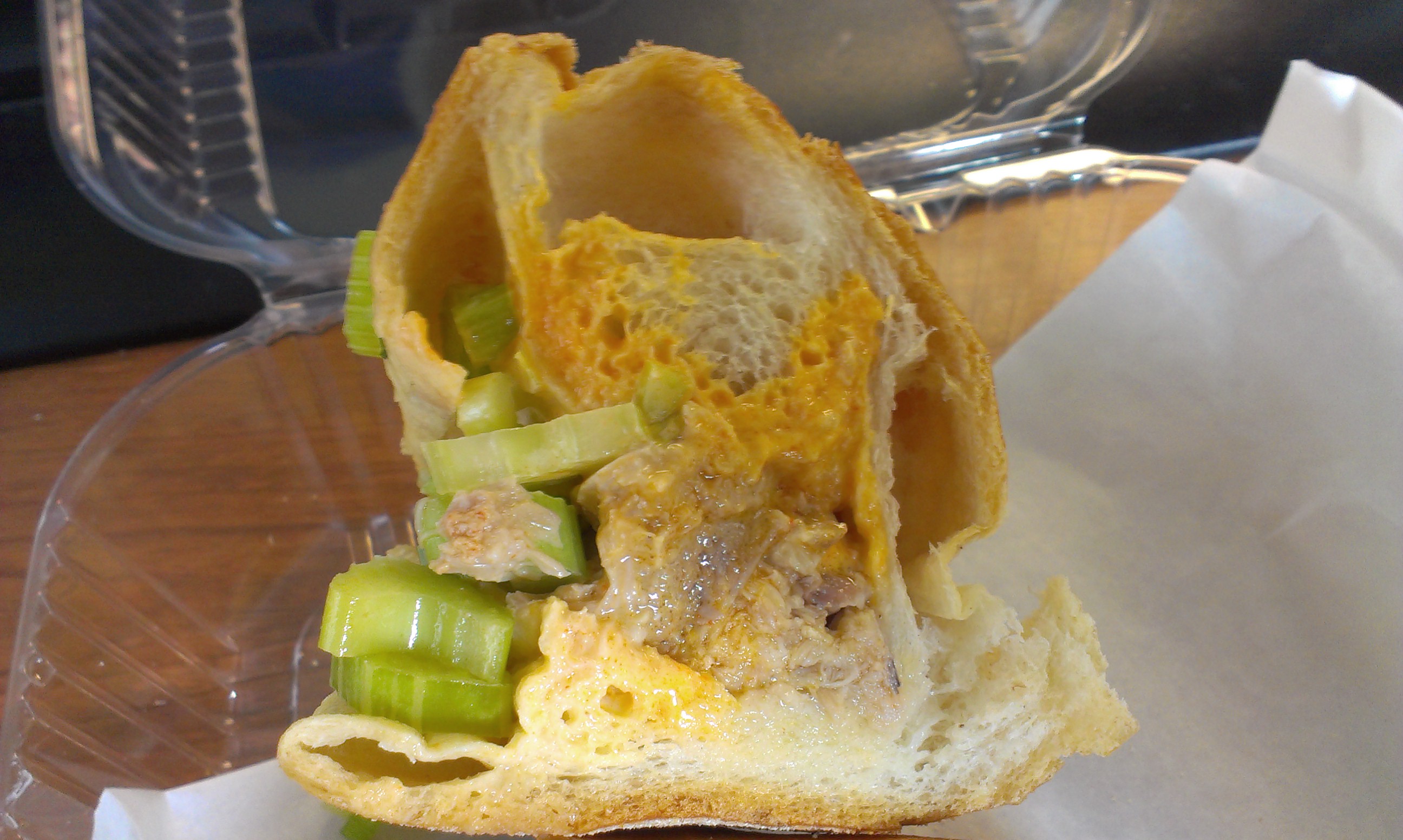 The best part of the sandwich, in my opinion, the one thing that elevated it above lesser buffalo chicken sandwiches, was the pickled celery. It added a nice crunch to an otherwise soft sandwich, and it provided a good, vinegary bite that cut through the heaviness of the braised chicken and buffalo and bleu cheese sauces.