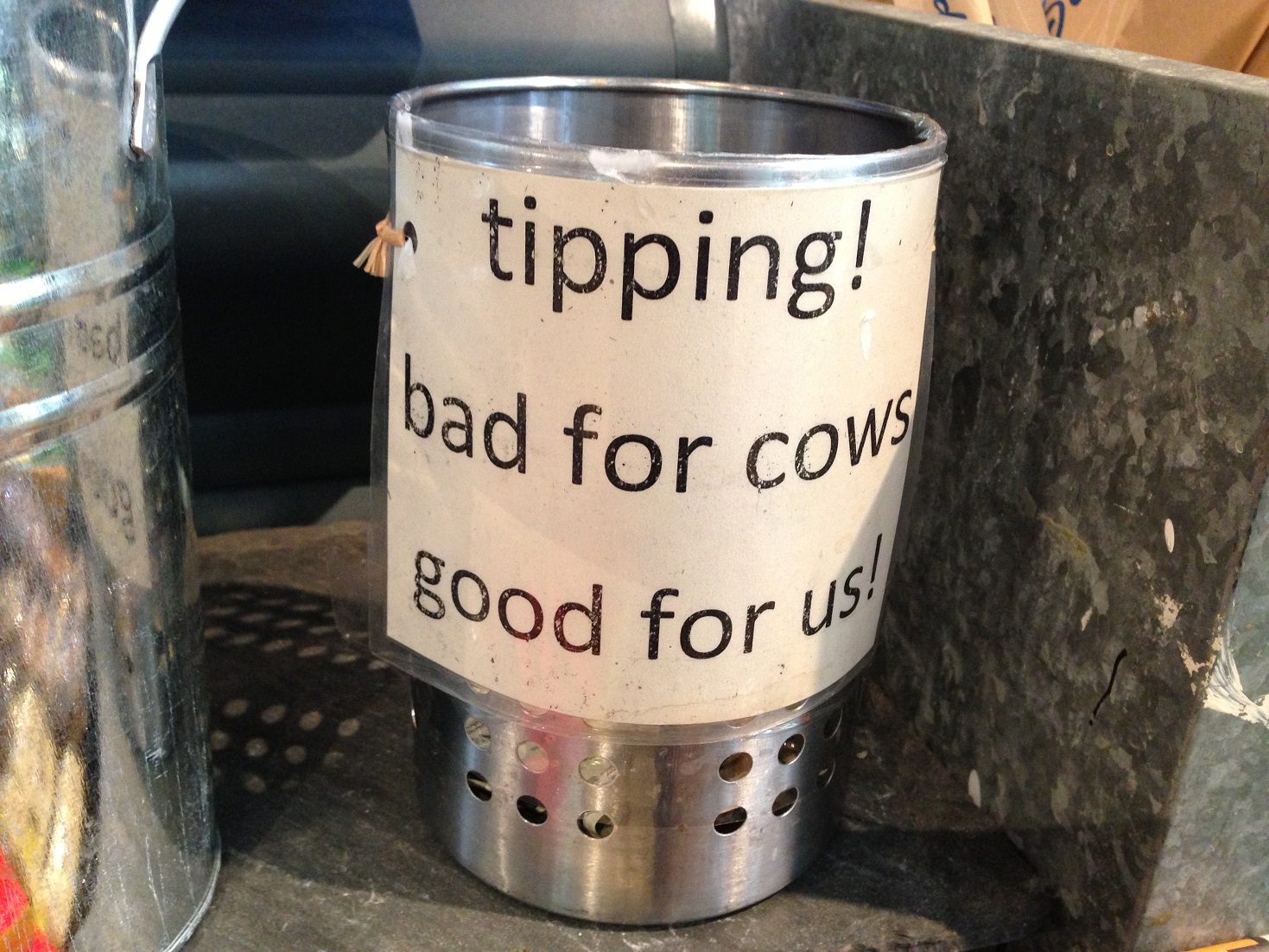I loved this sign on the tip jar, especially since I recently had a conversation with one of the employees at Arethusa Farm that cow tipping is not something she has ever seen or done, even growing up on a farm. I also saw the headline to this great article on Slate, debunking the myth of cow tipping. Shortly after seeing that article, I saw: “Chuck Norris doesn’t go cow tipping, the cows tip themselves out of fear.”