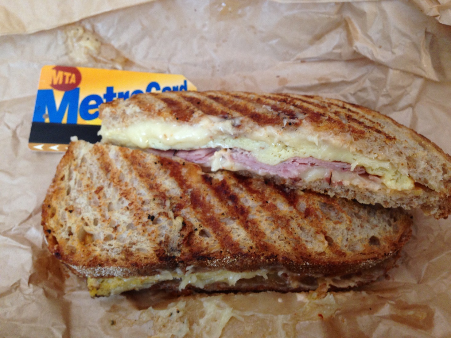 The sandwiches always struck me as the high end of ML prices. Not crazy, but for $9, a grilled ham and cheese better be really good. In their posts, Clay and Brian had already tried a couple of the sandwiches (including the big deal sandwich which Brian liked came down in price from $11 to $10), so I picked the ham, egg and cheese hoping it would be more filling than some of the protein-less options. Yes, I technically had an egg sandwich for lunch. But here at ML we don’t discriminate against breakfast items for lunch. Additionally, you FL’ers previously picked Doughnut Plant as the one of the best lunches in our area.