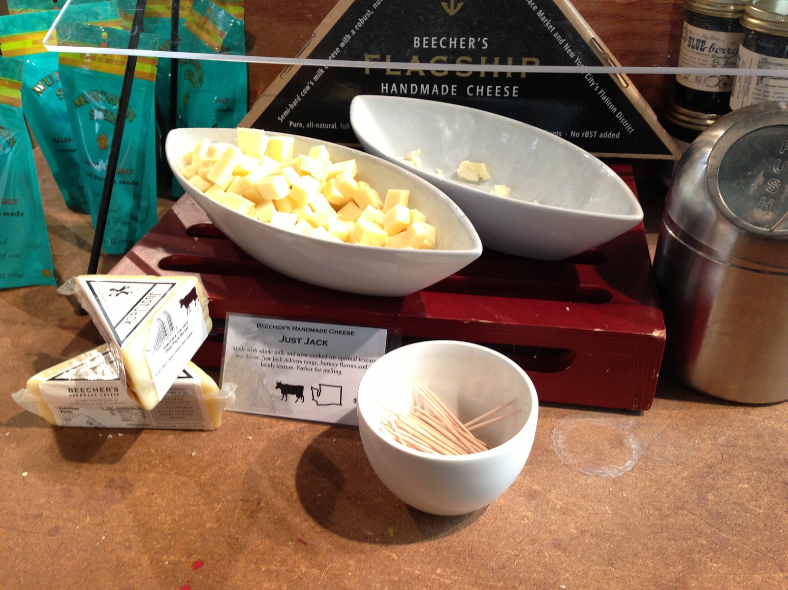 When they first opened, Beecher’s were serious about the free samples. It was a great strategy to get visitors trying things while in the store. On one visit, they only had some cold curds. They were neither squeaky nor warm.