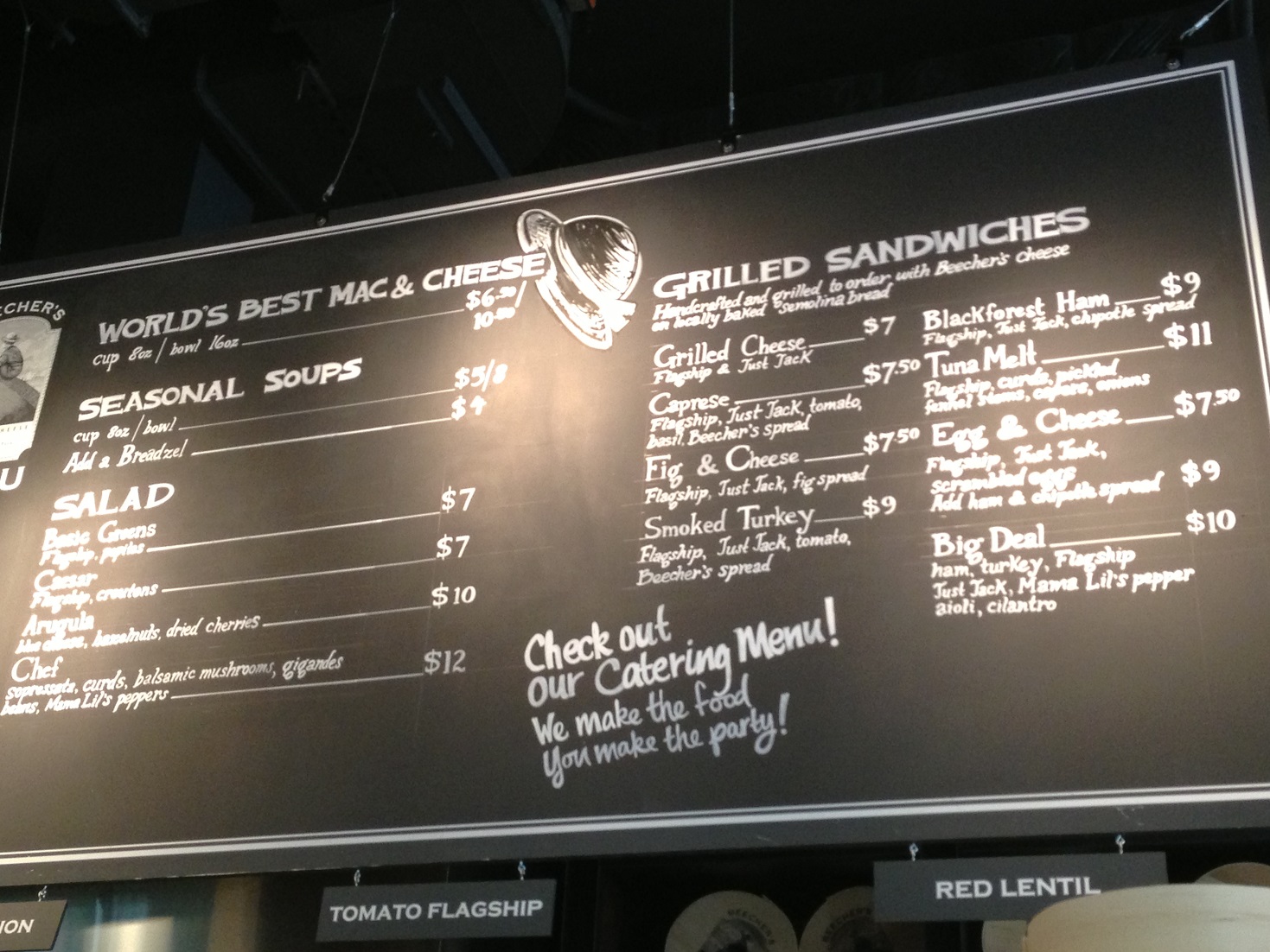 When I first took over as Flatiron contributor, I met the former contributor, Ultra Clay, and ML contributor Brian Hoffman. When I asked if they had any restaurants recommendations for FL, they both said I should make a return visit to Beecher’s. It had just opened, and both of them liked the food…and the free samples.