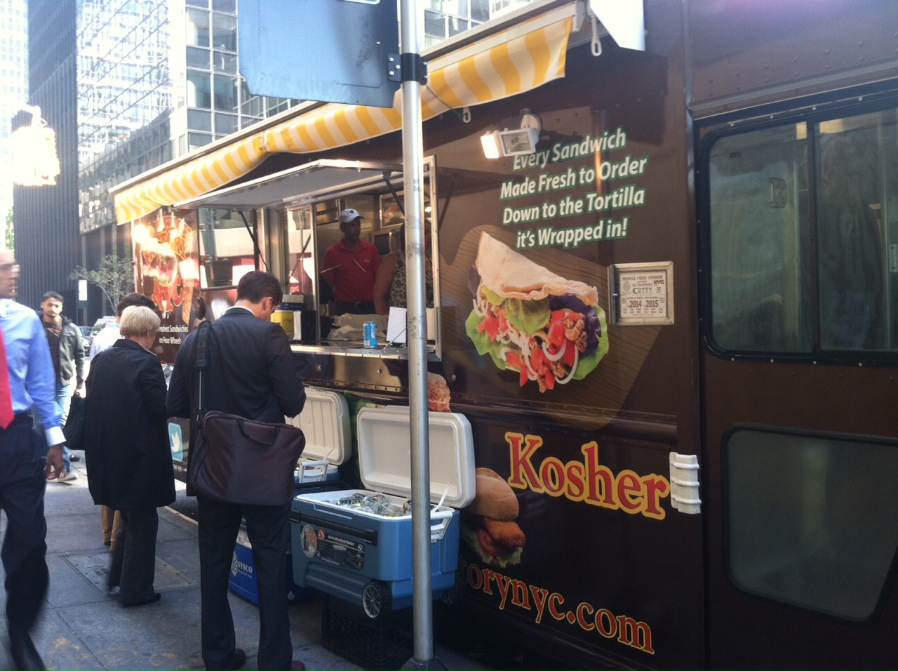 I haven’t seen these guys on the streets yet but they are calling themselves kosher and were out on the most religious of jewish holidays ? How kosher are they? Not at all if going by kosher rules… I’ll update you on their sandwiches if any of my non-kosher friends decide to stop by and taste the food. Looks like more and more kosher trucks/carts popping up around the city.