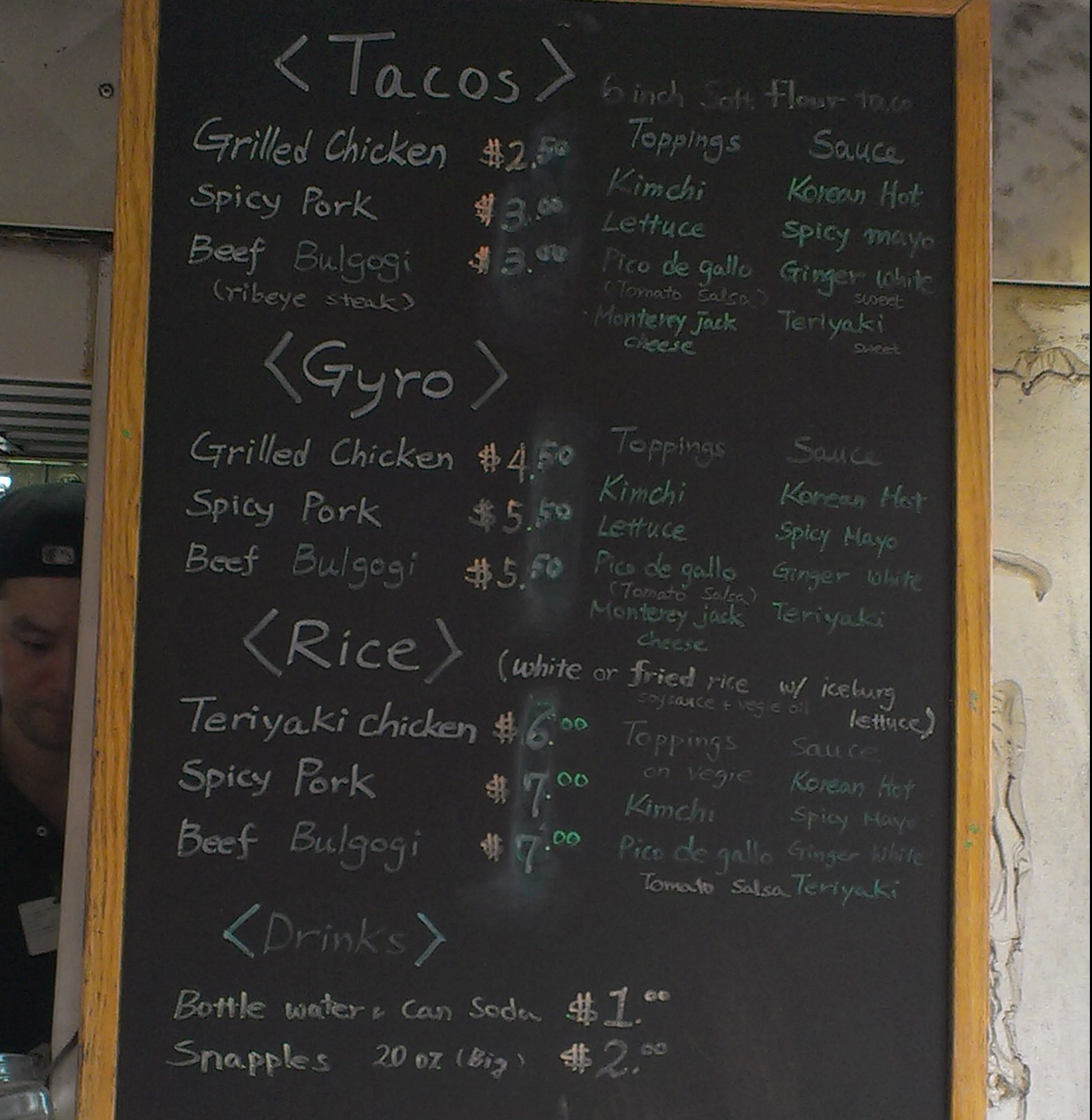 Way back in 2012, Anna reviewed the Yogi BBQ Cart, then a newcomer offering Korean fusion in Midtown East. Anna was pleased by the cart’s tacos, but was intrigued by the Korean gyro she saw on the menu. So when I saw the Yogi Cart on the corner of 3rd Ave. and 49th, I jumped at the opportunity to try some Korean-Greek fusion.