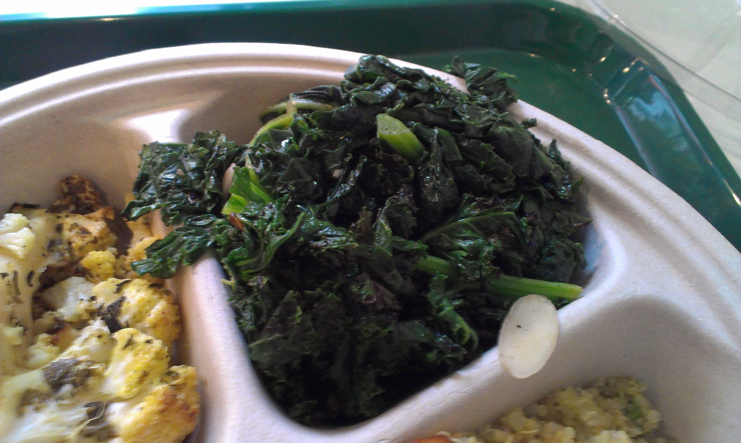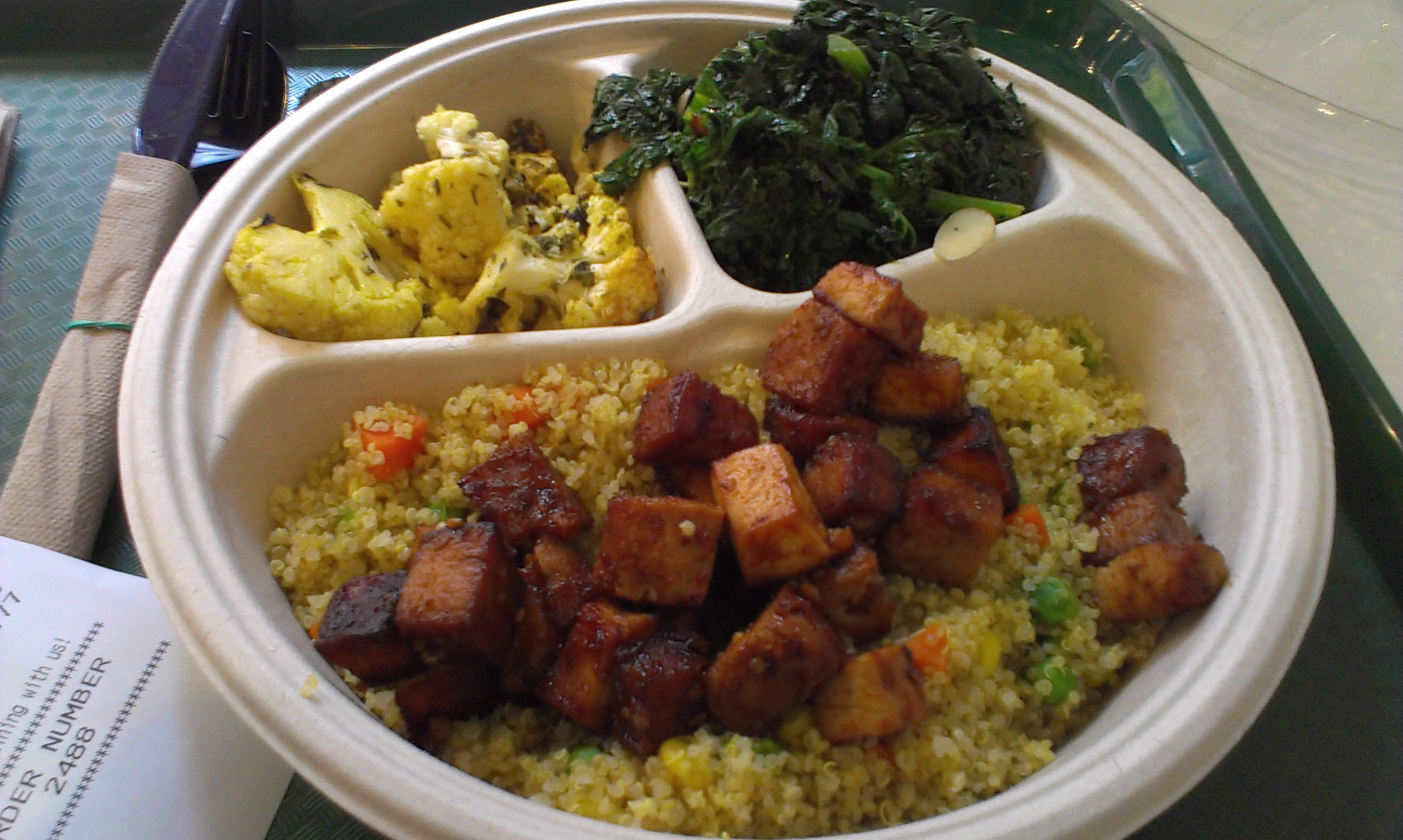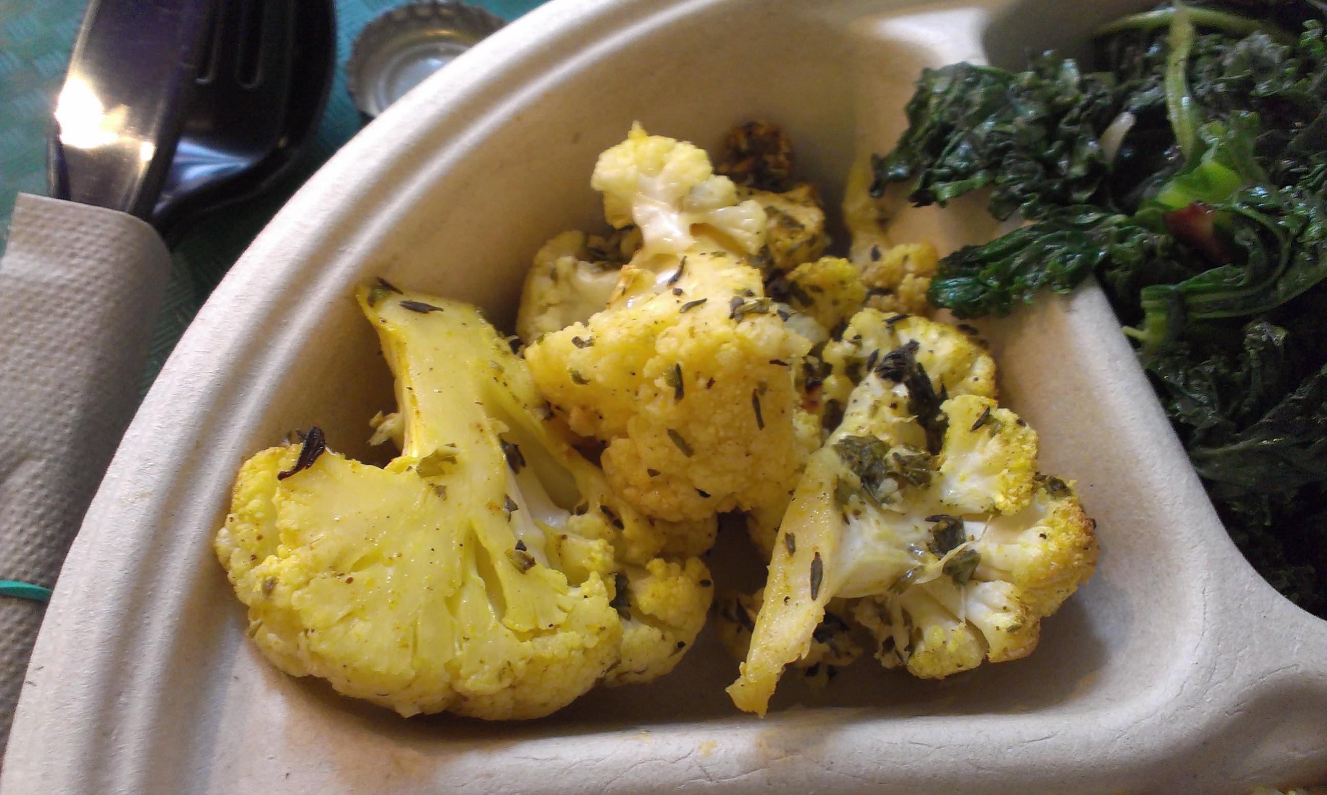 Along with my tofu, I got quinoa, roasted cauliflower, and grilled kale (it is Kale, after all). And while I know I might catch heat for this, it was all very good, darn close to justifying the high price tag.
