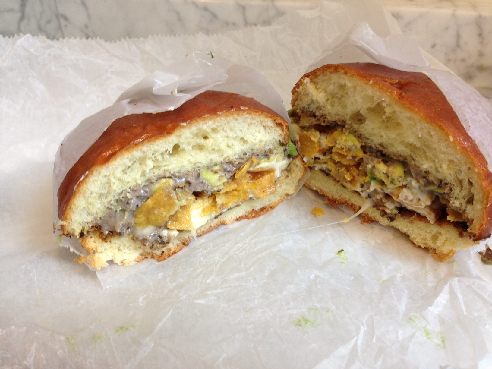 He also ordered the egg and cheese ($5.50), which is a deceptively simple name for a not-basic sandwich. This version comes with more than the name suggests. It has over-easy eggs, Monterrey jack cheese, avocado, black bean, chipotle hummus and tortilla chips on a brioche bun. This was pretty much my perfect egg sandwich. I regularly make egg-based breakfast (at least on the weekends) that includes some of these flavors, but it is hard to beat an amazing egg sandwich like this for only $5.50.