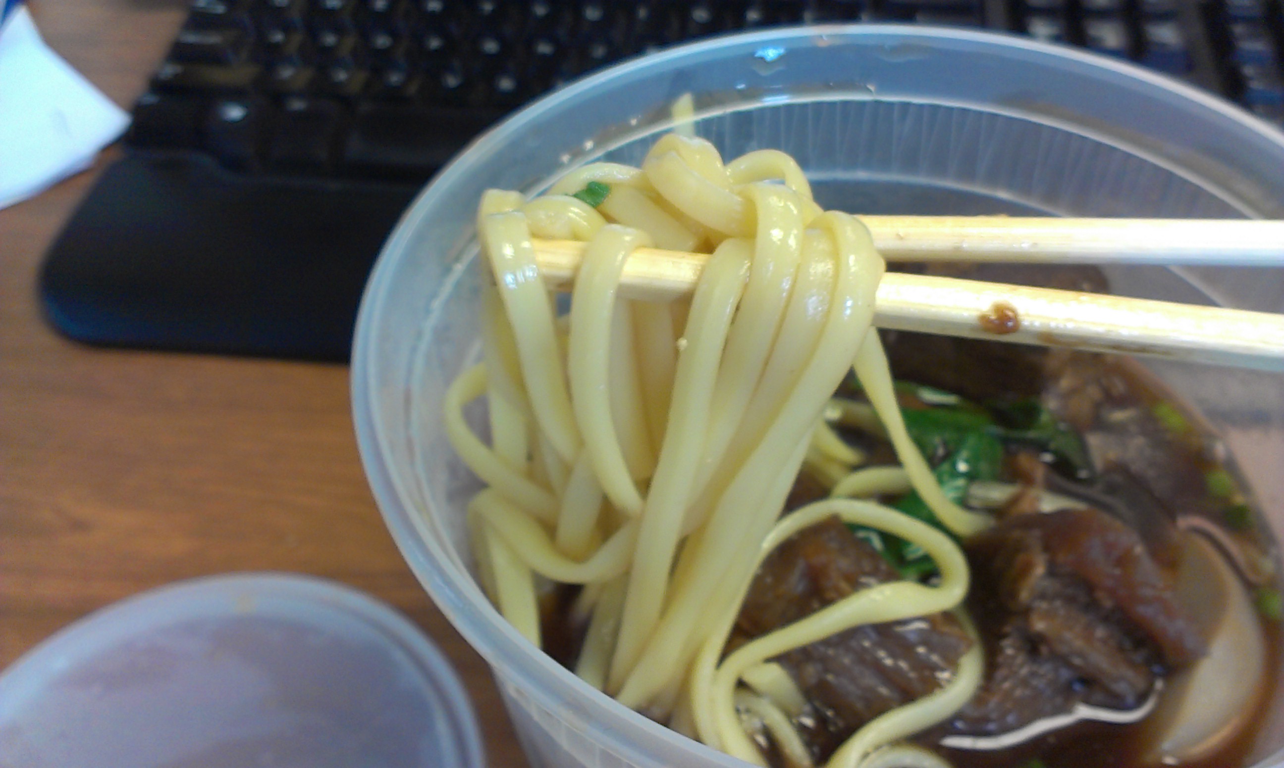 Radiance Noodle Bar, the take-out stand of the moderately priced restaurant upstairs, offers a small Cantonese menu of noodles, steamed buns, and rice dishes, all of which priced at or under $10. Joer mentioned the hoisin pork cold noodle dish as his favorite, and I wanted to try out the chicken, pork belly, and beef steamed buns, but I went on a particularly cold day, so in the end I couldn’t resist the braised beef noodle soup.