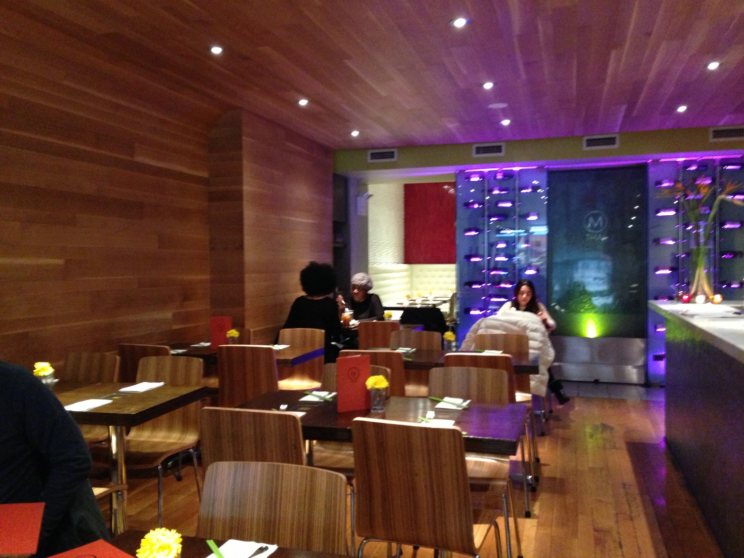 M Thai interior reminds me of many other “hip Asian restaurants”. I can’t quite put my finger on the common elements, but I have noticed unnatural colored lights. When I figure out how to accurately spot and define this decor, you will be the first to know.