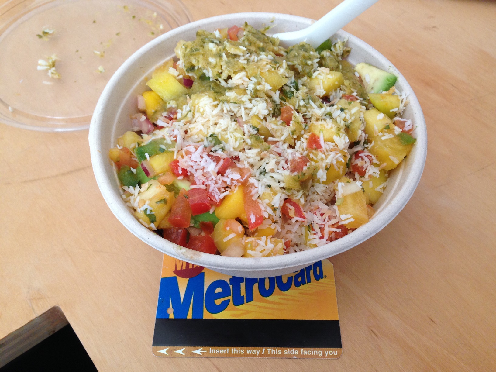 Despite a good variety of ingredients, the overall flavor of the burrito was underwhelming. It seemed to me that the individual ingredients weren’t properly marinated, roasted or seasoned in advance of cooking, so there wasn’t depth to the flavors. The medium spicy salsa struck a balance between fresh tomatoes and smokey flavor and helped elevate the burrito.