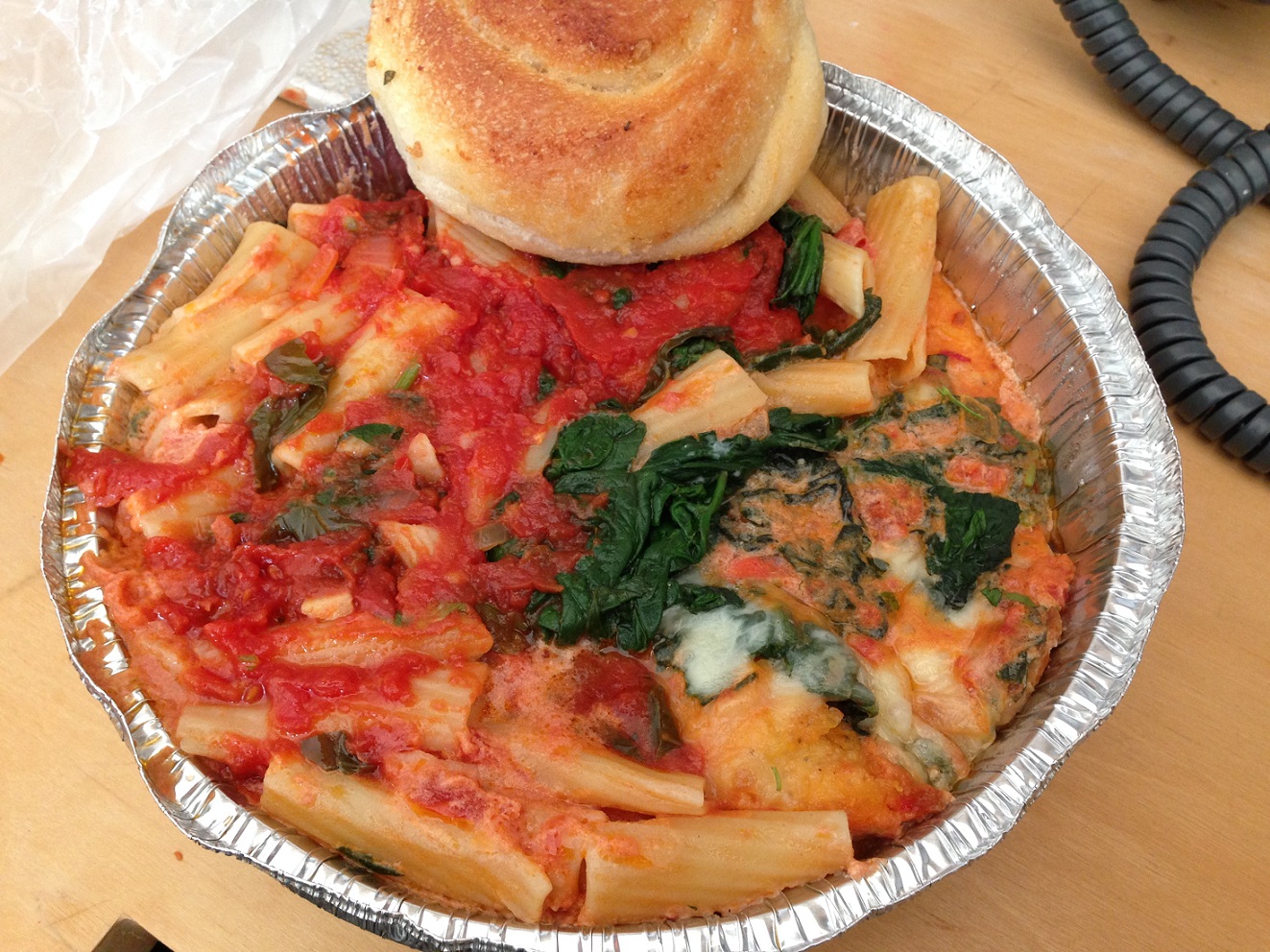 For my lunch special, I ordered the chicken mascoponi (breaded and fried chicken with spinach and cream sauce) which included a moderate sized chicken piece and the rest of the container was filled with the coordinating pasta mascoponi. The sauce was great, and my only complaint about the dish was the softness if the pasta – if fell apart as I ate it.