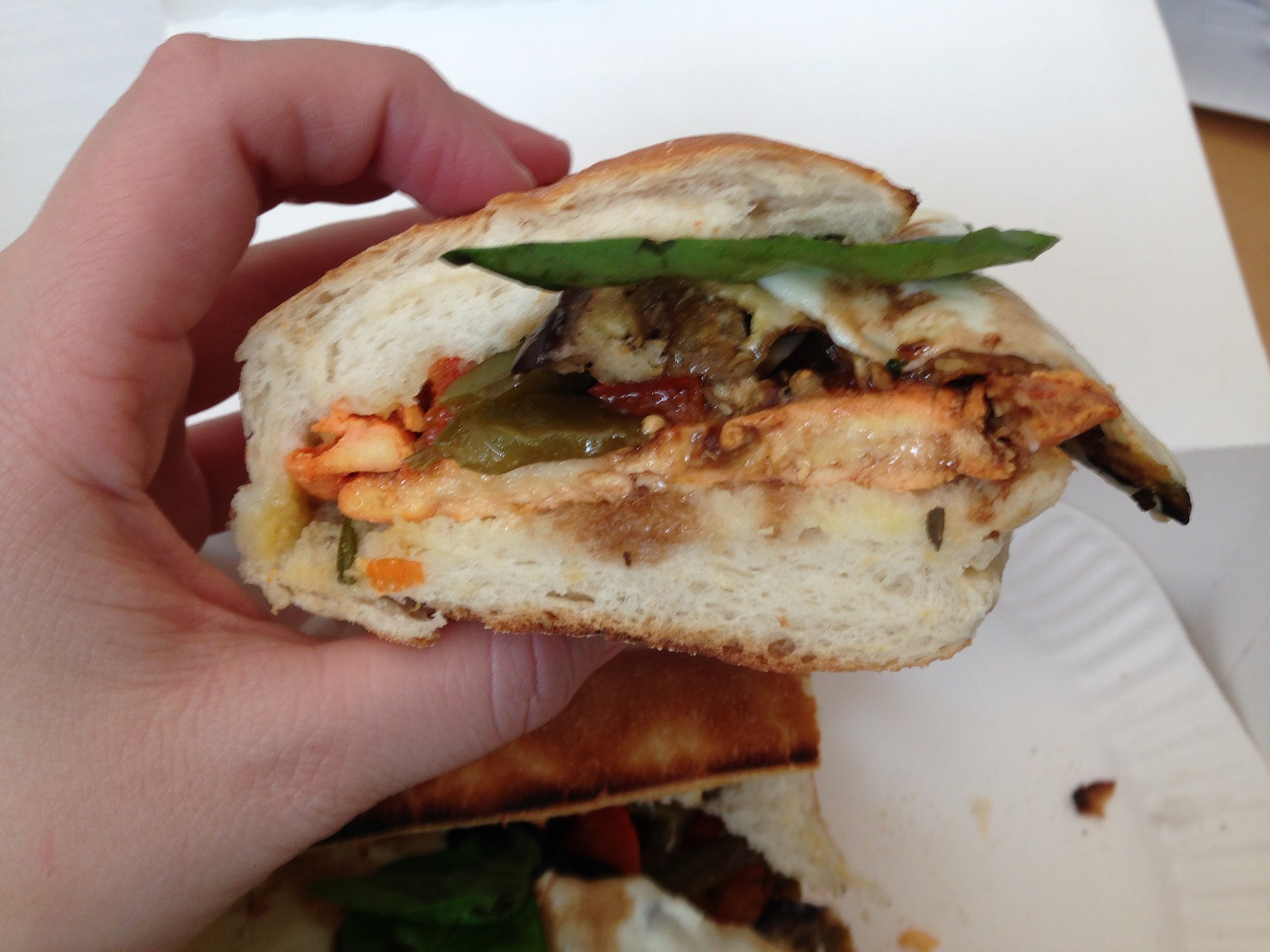 I was also drawn to the Rustico Hero ($6.75) with grilled chicken, grilled eggplant, roasted peppers, melted mozzarella, balsamic vinegar and basil. I agree with Lunch’er Lawrence that this an amazing sandwich. I wasn’t sure how much I would like the roasted eggplant, but it was perfect together.