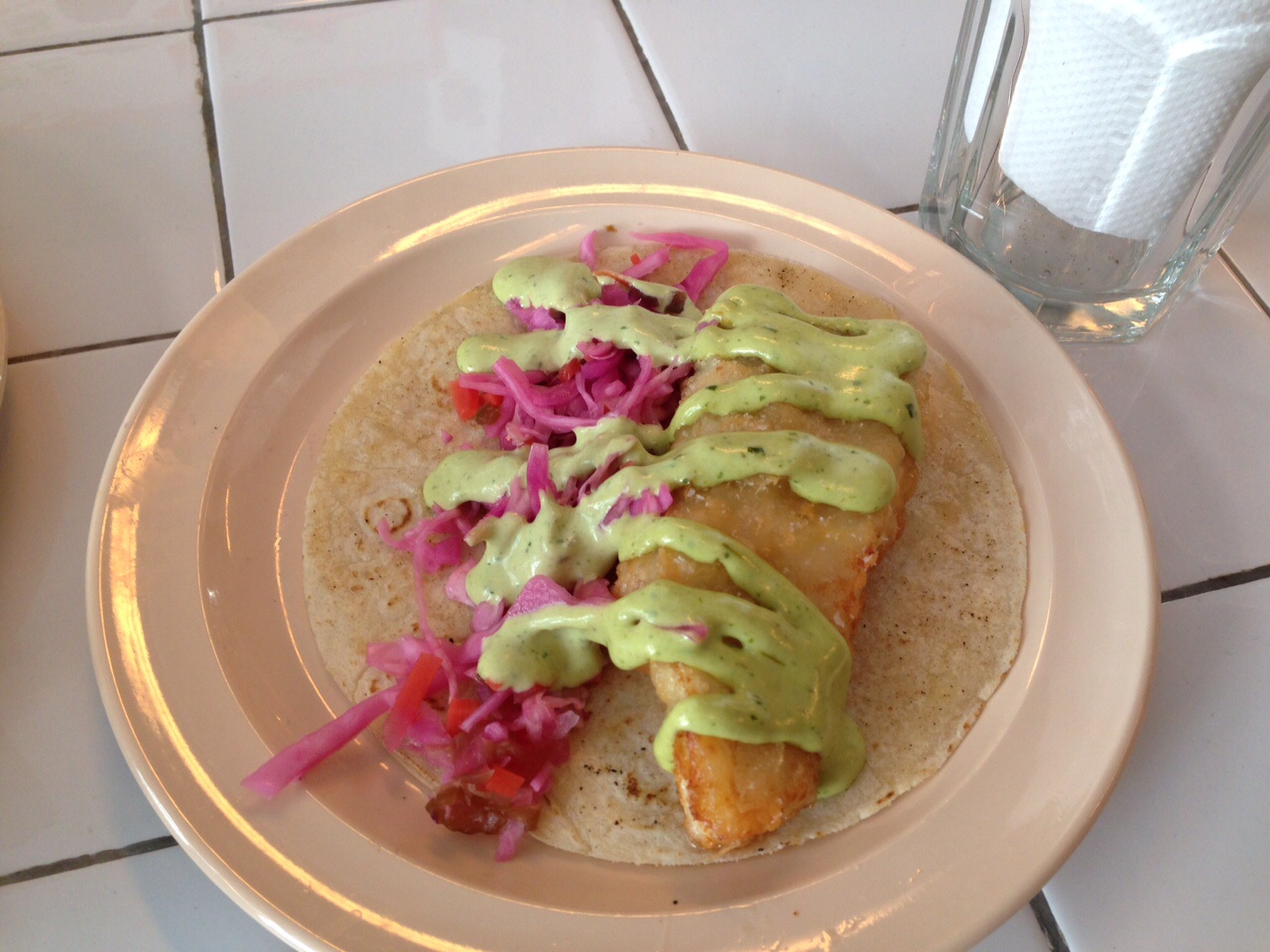 Next, came the crispy fish ($4.95) taco. With a huge portion of fish and pickled cabbage, the taco was only missing a lime wedge. (Do we think the great lime shortage of 2014 is still happening?)