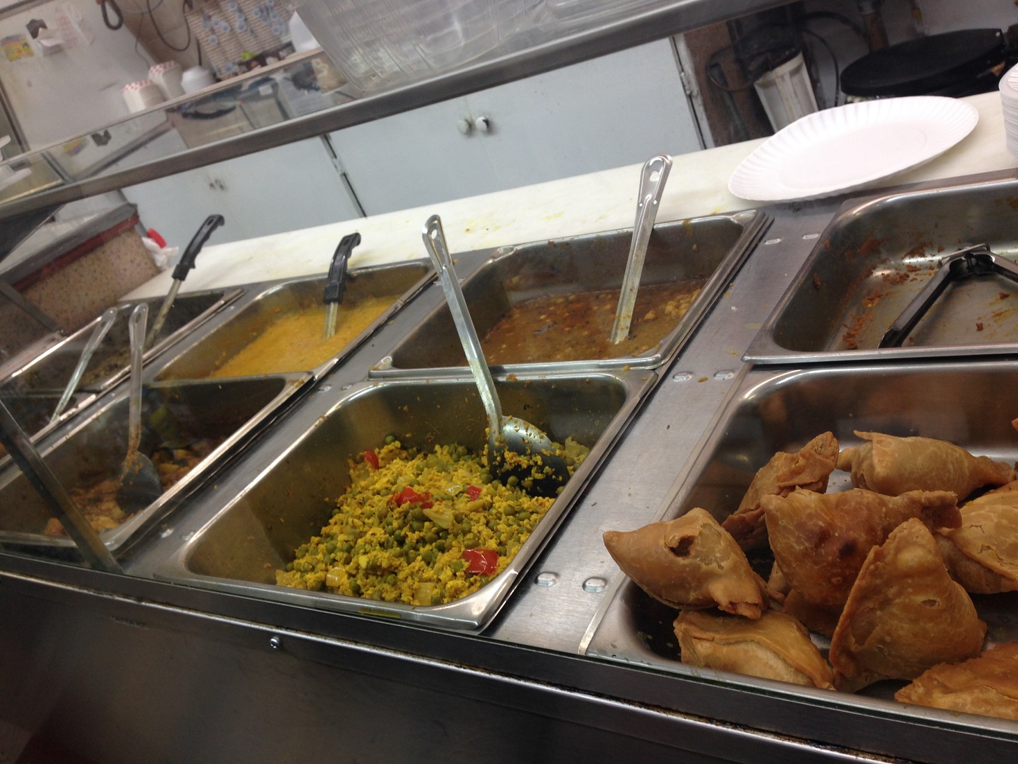 Seems fitting that I should start with an Pakistani/Indian (but mostly Pakistani, I think) restaurant. Dil-e Punjabi is a west side gem where there are almost no restaurants serving this type of cuisine. With a hot buffet of vegetarian (and even vegan) options on the cheap ($7 for three curries over rice with spicy green chutney and yogurt and a roti (actually, I think the roti is pretty bad, so don’t be surprised if it doesn’t taste as good as you want it to.))