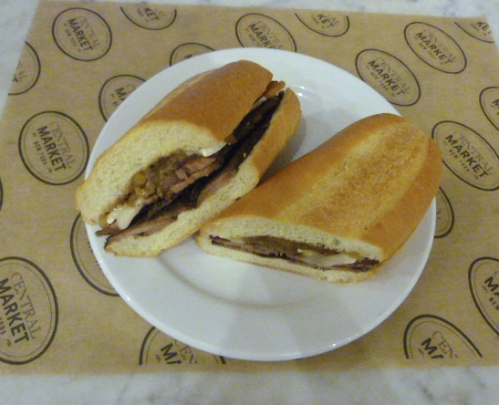 My first stop was at Central Market, in the corner of the lower dining concourse next to Chirping Chicken. Here, you can get a variety of sandwiches—either made to order or grab and go—and a craft beer if you’re having “one of those days.” They have a different hand-carved meat each day of the week that you can get in a sandwich or plate, and the day I was there (Friday) it was beef brisket. The other four days are: flank steak, stuffed pork loin, roasted turkey, and pork belly. I was offered the day’s specialty sandwich with brisket, Brie, and caramelized onions and apples. That last ingredient made the sandwich for me, and my co-workers who also sampled the sandwich said they were surprised by the Brie as a choice of cheese, but it worked. Consider Central Market a couple of notches above the generic deli in your building, meaning you’ll also pay a bit more. While their regular sandwiches average $8 for base models, the sandwich on a hero that I had costs $12.