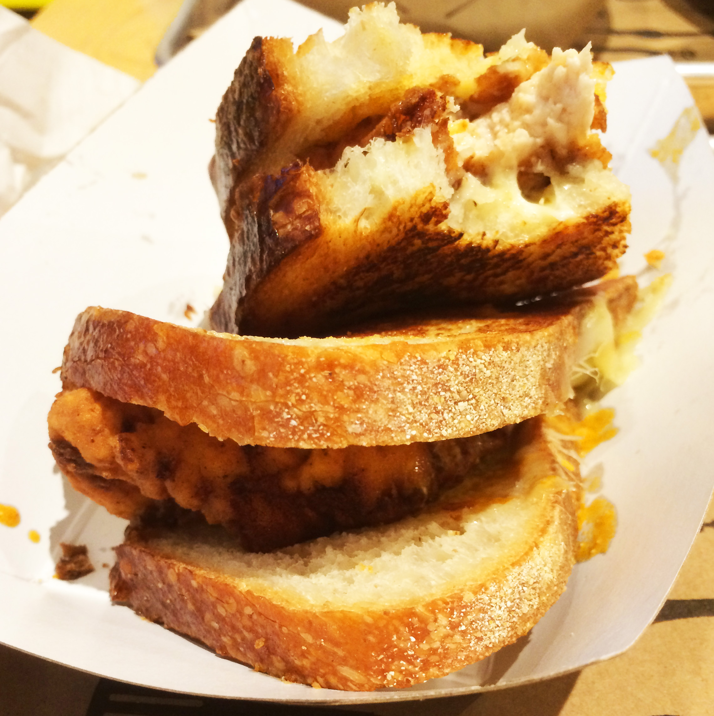 My only real issue with the sandwich was the number of tenders, and their placement on the grilled cheese. For $9, you would expect enough fried chicken to fill the entire grilled cheese. Unfortunately, that’s not the case. I can appreciate the argument that arranging the chicken on the sandwich isn’t a perfect science, as you don’t want it falling out with each bite, but you want to make sure there’s enough chicken to cover the entire sandwich.