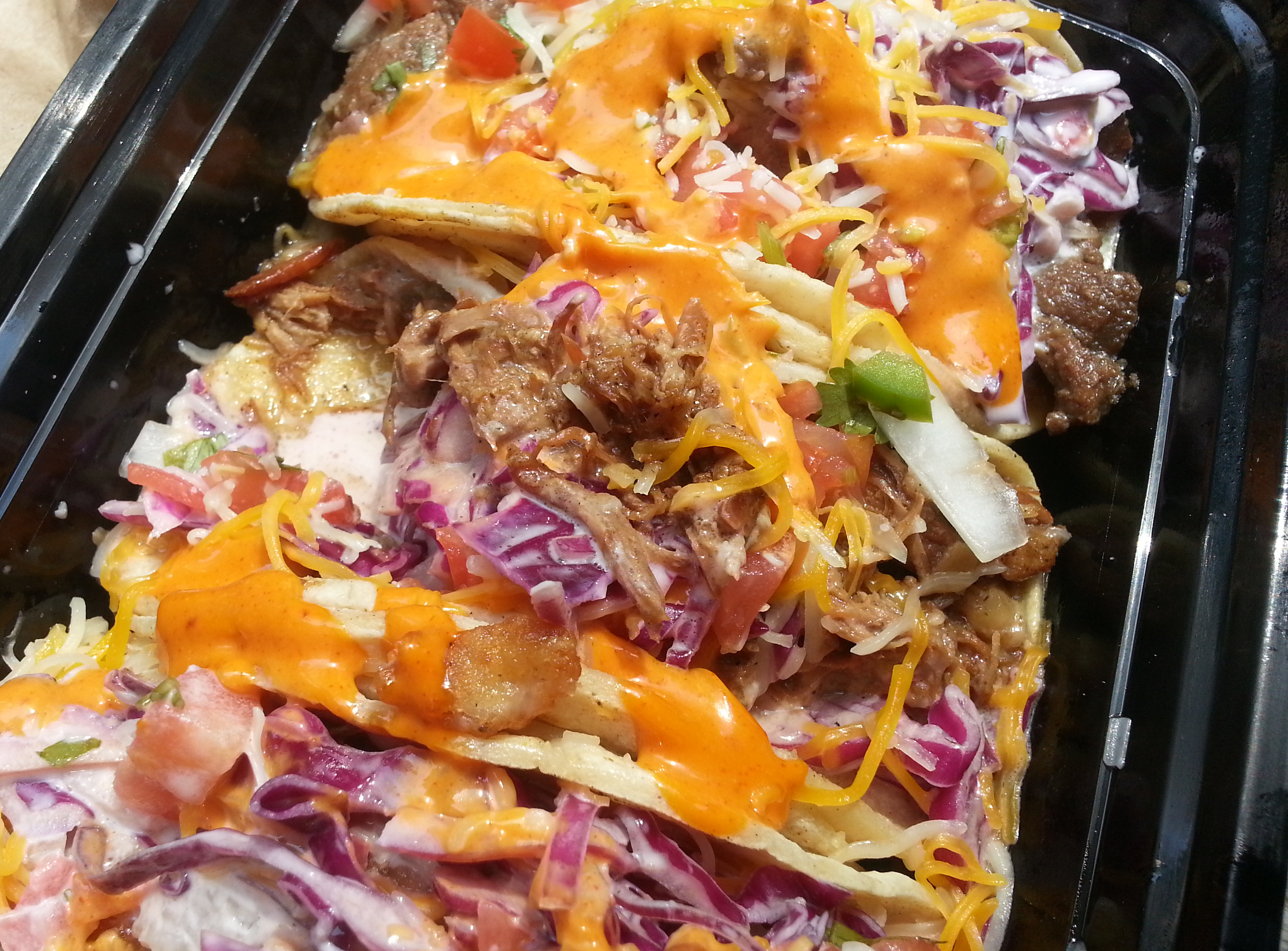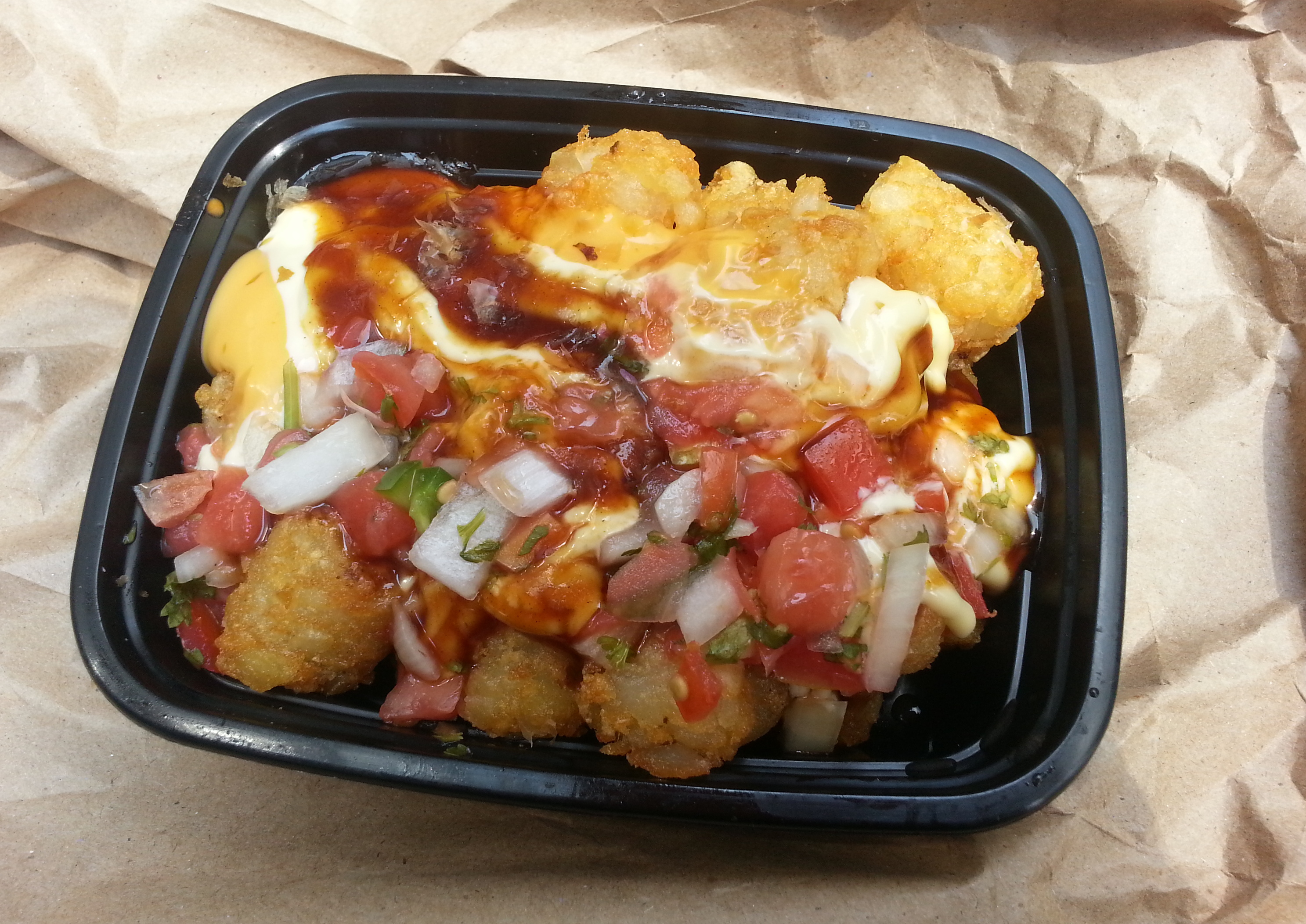 To be completely honest, when the Domo Taco truck first appeared on the scene years and years ago, I wandered by and sampled their Nacho Tots when they were parked at the Seaport. The idea excited me to no end, but the execution was flawed and I was disappointed and handed off the remains to a friend (the tots were soft, the bonito flakes were way too abundant for no reason, and the overall taste was blah). I was a bit apprehensive to give them another try, but I figured if the item was still on the menu after this many years despite its mediocre initial iteration, maybe they’d finessed it to a better end product?
