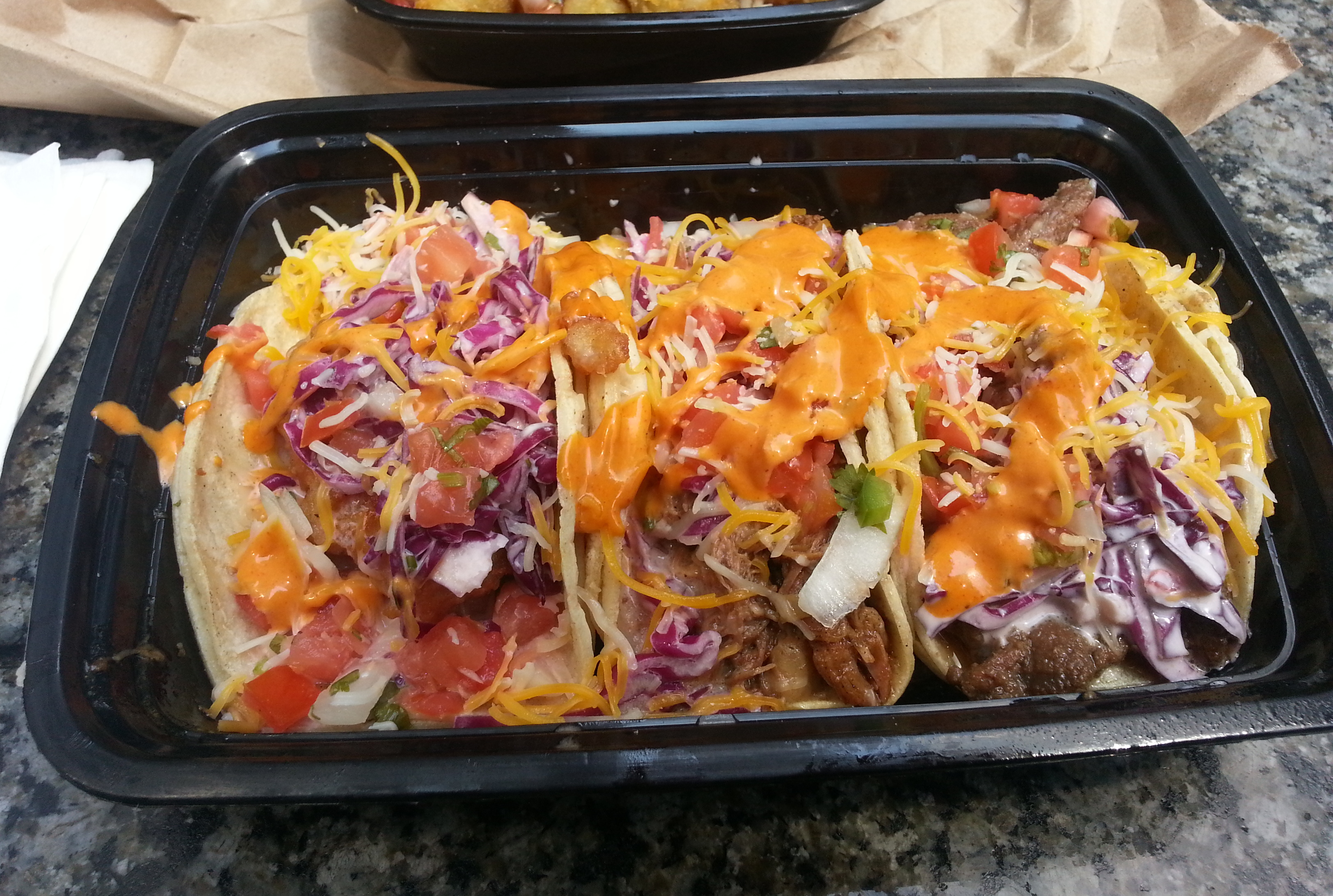 Onwards to the tacos – yes, I still ate tacos and 3/4 of that tot-strosity (which, at $4, is a total bargain) – fish, pork and steak for me.