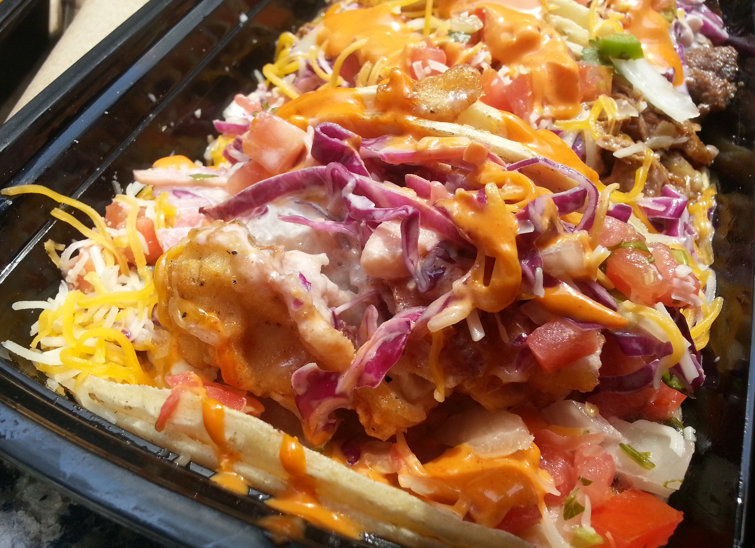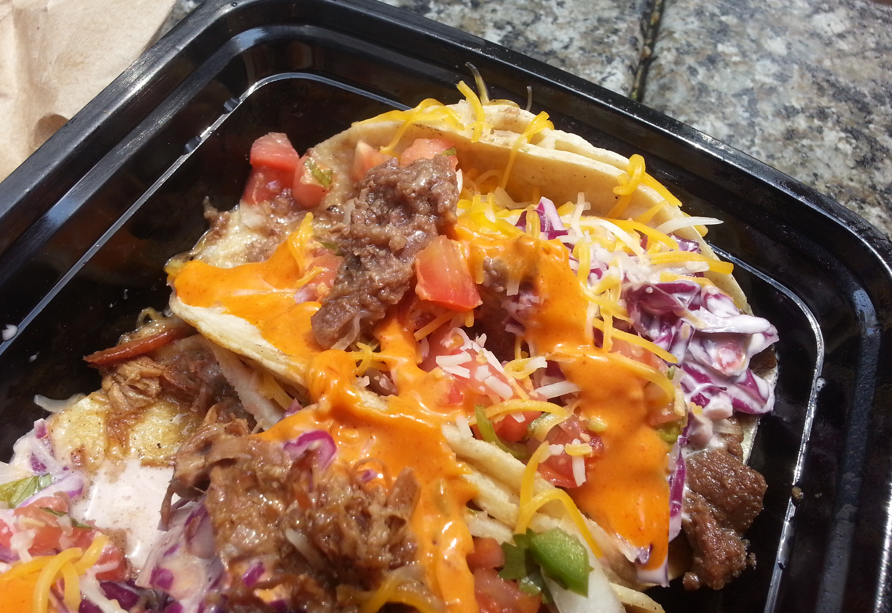 Overall, as you can probably tell, I was thoroughly pleased with my tacos. I might opt out of fish next time and stick with a land animal (I don’t care for shrimp in general), but the tacos were very tasty and I was super duper full at the end of my meal (plus the nacho tots I’d eaten). My 3 taco combo clocked in at $8 and I would have been full already at that point, while Dave’s bowl was also $8 and basically was what I got but with a hefty serving of rice instead of in tacos. Completely reasonable prices for the amount of food you get!