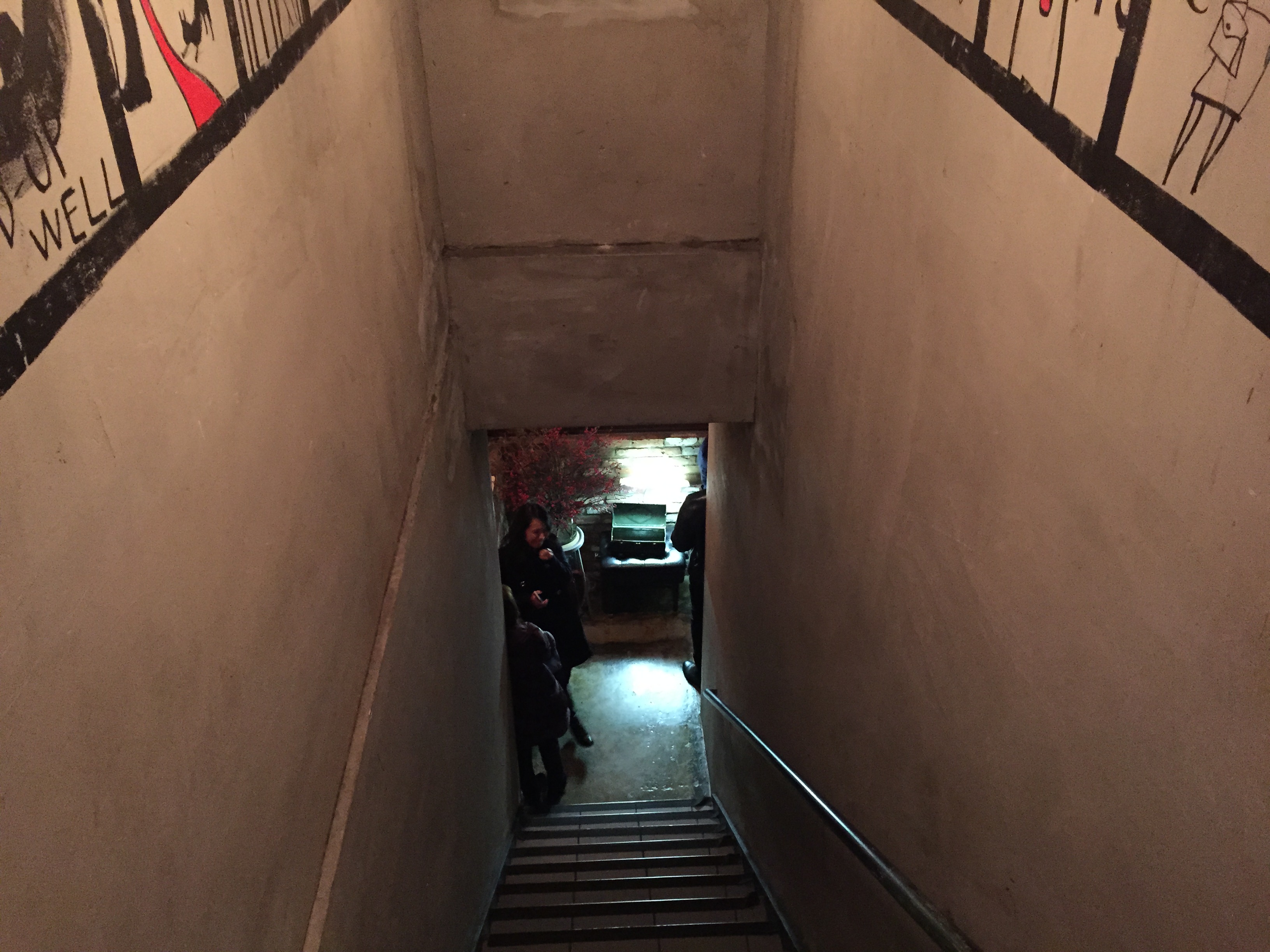 You could easily miss this spot with just the narrow frontage of one small door opening to just a staircase. The “MEW” painted on the exterior side wall could almost pass for graffiti, and tiny signage overhead is simply a cryptogram of an emergency exit symbol along with the kanji character for “alcohol.” You can’t help but think the owners want you to make the effort to find them. Ah, the Japanese and their speakeasy restaurants.