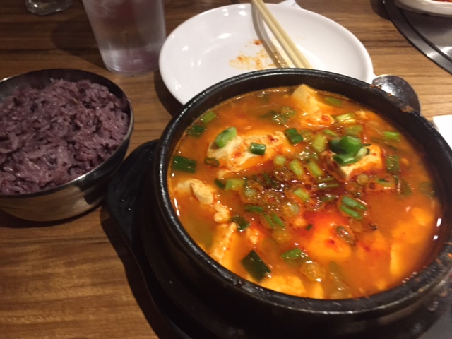 Okay, so it’s been some YEARS since I’ve done the 4am drunken grubbing at Kunjip, but I remember the bill feeling a bit pricy (after all that alcohol spending). I’m sticking to the lunch crowd these days, and thank god they still have a lunch menu of mostly under $10, full of stews perfect for the arctic chill. Unfortunately, I didn’t realize that one of our coworkers can’t handle spice, until they pointed out that the lunch menu is almost ENTIRELY spicy. Oops. Makes more sense to mark the NON-spicy options at this point, or not to drag along my capsaicin-challenged coworker.